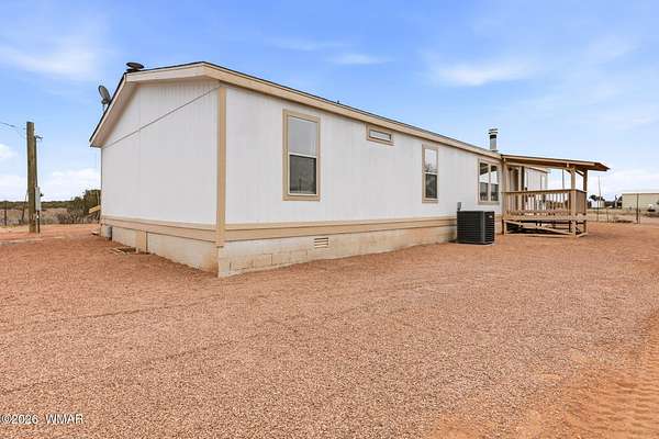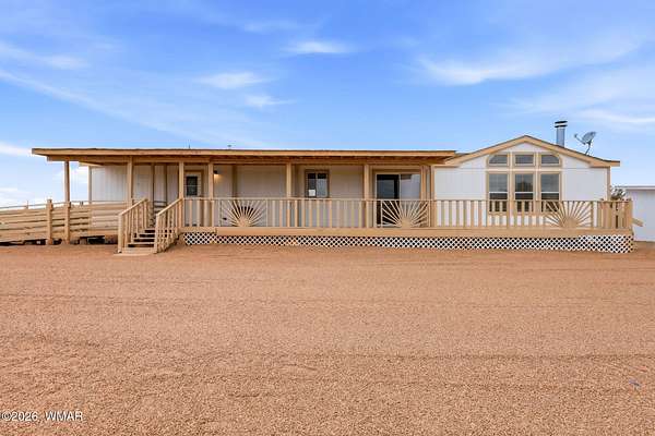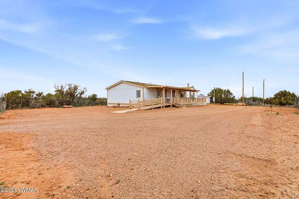 Remodeled home located on almost 5 acres, good access only 20 minutes from Snowflake. Huge deck off the rear of the home and front deck. Large storage building with fenced dog run. Remodel includes, all new appliances, A/C & heating unit, flooring, paint (inside and out), counter tops, light fixtures, windows in living room, new sinks and faucets throughout - the seller just installed a new roof. Master bath has new tub, walk in shower and toilet. 2 living rooms, The house area is fenced. Community well was updated in June of 2025. The cost of the well is $180 twice a year and includes cost of the electricity and maintenance fund. There are currently only 3 homes on the well share. This home is move in ready. Cash, Conventional, FHA or VA available for financing.