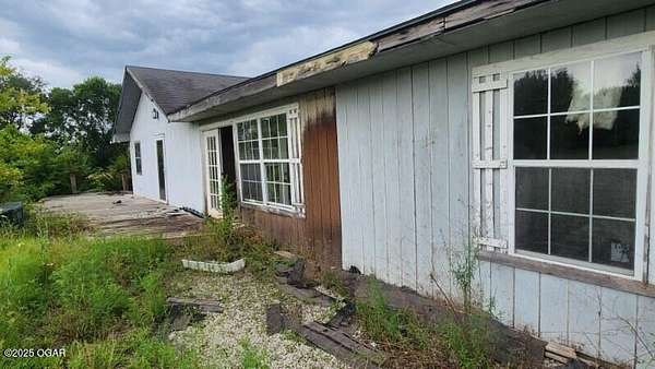 This property is very secluded down a lane behind a present field of corn. The property has 7.01 acres. The property has electric ran to it. The buyer will have to put in a water meter and run it down the lane to the property. There is no sewer system; at one time there was a lagoon but was on land the seller once sold. There is a newer garage. The old house needs to be torn down ...to make room for you to have an incredible homesite! This property can be your amazing sanctuary with some sweat equity.