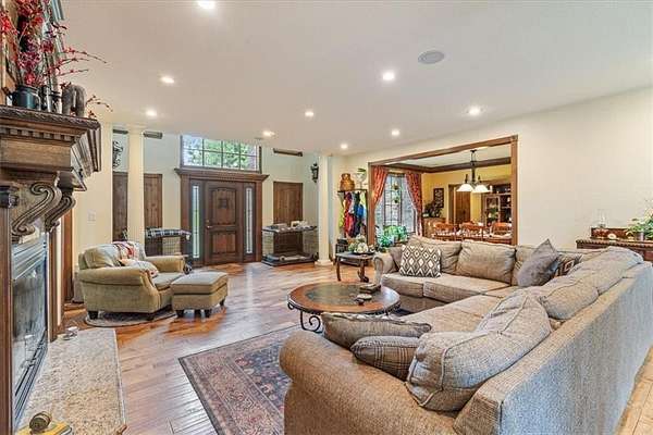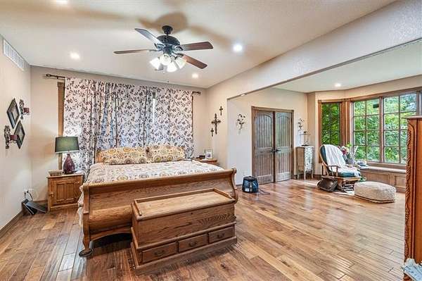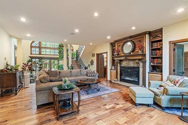 Ozark Foothills Stunner! This custom 6-bedroom, 4.5-bath home, built by a local craftsman, sits on 174.11 acres m/l and offers the perfect blend of elegance, comfort, and function. Featuring soaring ceilings, granite countertops, a huge island, and a chef's kitchen with a commercial-size stove and hidden fridge, this home is made for entertaining. The main-level master suite includes a cozy reading nook and a spa-like bath with a soaking tub, double sinks, and walk-in shower. Upstairs you'll find four bedrooms, two baths, and a sitting area, while the walk-out basement offers a full MIL suite, office, library, and theater room. Outside, enjoy a spring-fed pond, barn, gazebo, professional landscaping, hot tub, and decorative fencing--all set against the backdrop of 174.11 stunning acres. Additional highlights include multiple fireplaces, wood/tile/carpet flooring, tankless hot water, energy-efficient windows, and full utility connections.