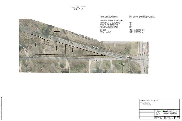 1.73 Acre Commercial Land The north two parcels of this property are Masterplanned Commercial. Township Planner and Zoning Administrator have indicated they would support rezoning to commercial for the right commercial user for the property for a maximum building size of approximately 9500sf, or RS - Suburban- Residential to allow for up to 2 separate duplex lots and one single family lot. The sewer is immediately north of the property. High-Pressure water runs in Division. In addition, the County has indicated they will grant a curb cut onto Division Avenue as shown in the attached site plans, including them paying to T off Division Ct with Division on the north end by a easement to them. Additionally, this property is down the road from Tanger, brings 4 million people annually.