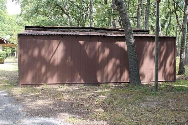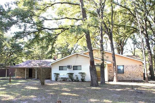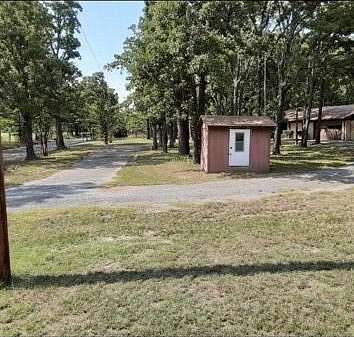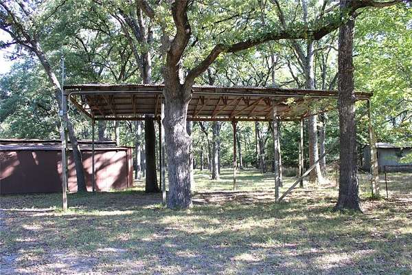 REDUCED!! +$10,000 in seller concessions! This Country charmer is sitting off the road in a park like setting with 3 bedrooms, 3 bathrooms, 2 car attached oversized garage with a bench & cabinets, RV or boat carport with electric, 30x24 storage building also with electric and shelves for storage, on 1.5+-acres West of Quinlan! Concrete and paved circle drive, Basketball goal for the kiddo's, well water for watering the Louisiana Iris's located in the front and some in the back with white, red, yellow, lavender and purple coloring or the Crepe Myrtles, covered front and 8x37 back patio's, fire pit, concrete pad to add your own gazebo, partially fenced on 3 sides, spacious living area with built in book shelves and an insert wood burning stove, breakfast bar, galley kitchen with tons of counter space and cabinets, built in glass top electric stove and oven, dishwasher, fridge, eat-in dining, 2 primary bedrooms both with an ensuite bath and exits to the outdoor, one primary bedroom has 3 closets with walk in's, extra window unit and wall mount space heater, and sliding glass door that lead to the bk patio, Hall bath has new light fixtures above sink and above vanity area with new porcelain tile on floor, full size laundry room, loads of storage thru out the home, double pane windows for efficiency, recent updates include: Water Heater Feb 2025, Carpet in 2 small br's, Vinyl floor in hall bath, Tile floor in Front BR- DW is 4 yrs old, Interior HVAC 2015