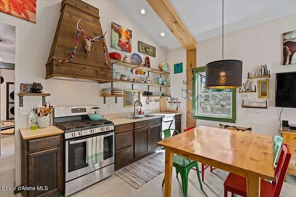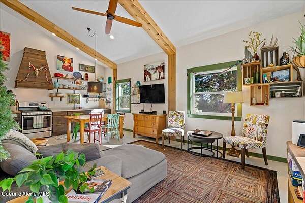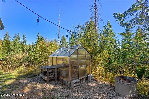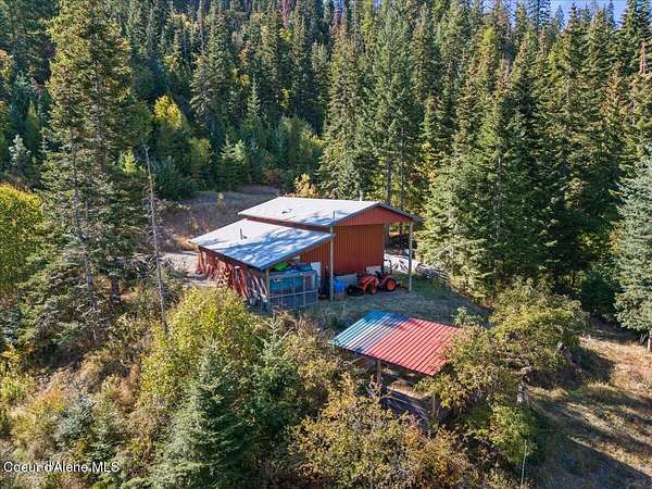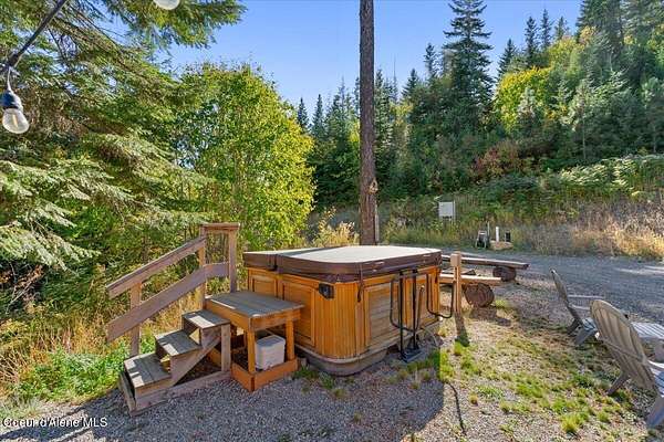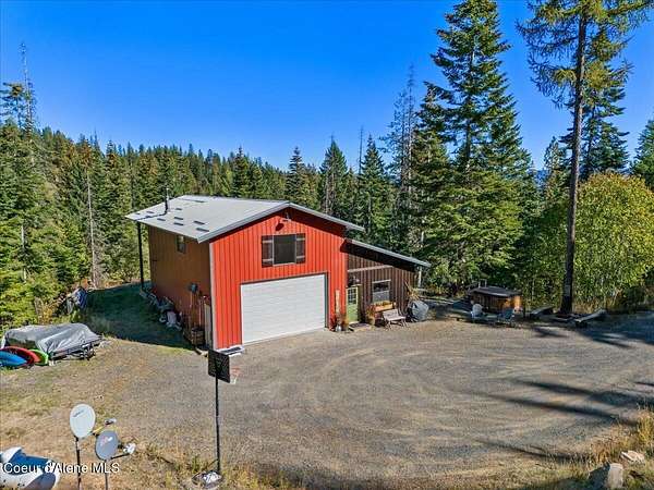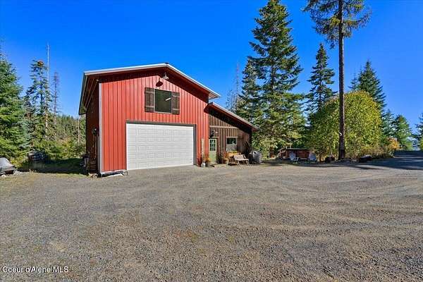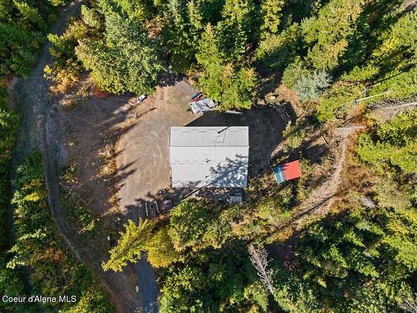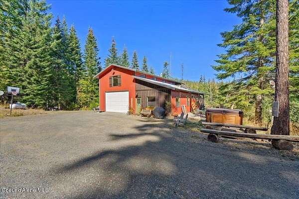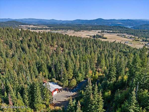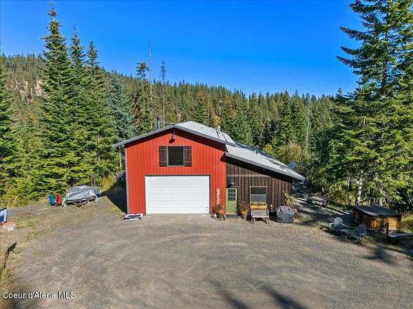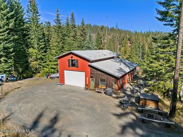 Escape to over 12 acres of pristine North Idaho beauty just 15 minutes from downtown Coeur d'Alene. This peaceful 2-bedroom, 1-bath retreat combines rustic charm with modern comfort, featuring radiant floor heat throughout both the home and the 24'x40' shop. The inviting interior includes a bright, fully equipped kitchen, cozy living space, and thoughtful finishes designed for everyday living or a relaxing getaway. Step outside to unwind in the hot tub under the stars, gather around the fire pit, or enjoy the sounds of nature from your own private setting. With ample room to roam and a prime elevated site offering potential for a future dream home with partial lake views, this property delivers unmatched versatility-ideal as a vacation rental, investment, or your own North Idaho sanctuary.
