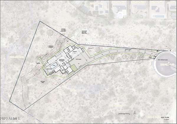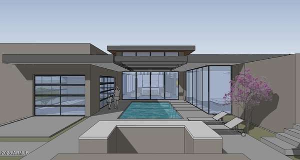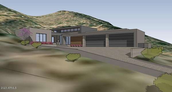 Welcome to the Estates of Westwing Mountain!! This 1.5 acre hillside lot is the highest elevation lot in this private 14 lot community. Peoria approved blueprint/rendering for a 4,600 square foot single level contemporary custom home...3 bedrooms, 4 baths, plus a den/office/4th bedroom, and 4-car garage with RV space. Adjacent to the great room is a large patio with 6 roll-up doors and triple sliding glass doors leading to the sparkling pool, plus outdoor shower and bathroom...rooftop patio to enjoy the picturesque 270 degree city and mountain views, along with amazing Arizona sunrises. Casita features a spacious bedroom, full bath and kitchenette. Seller has done most of the legwork...including but not limited to city site survey, topography survey, private site survey,