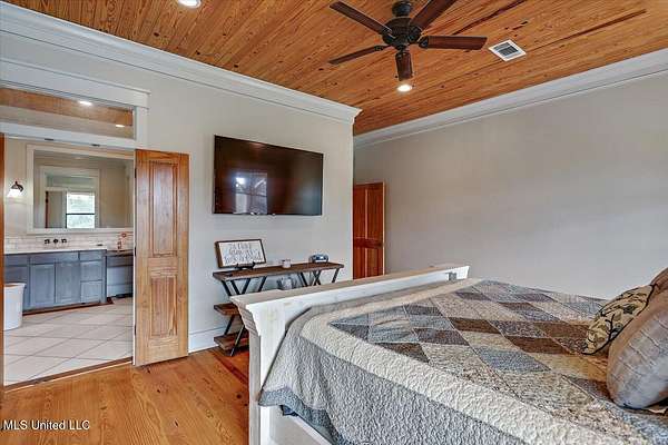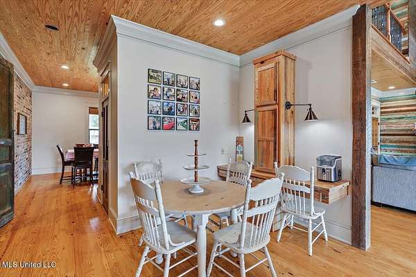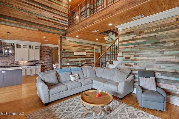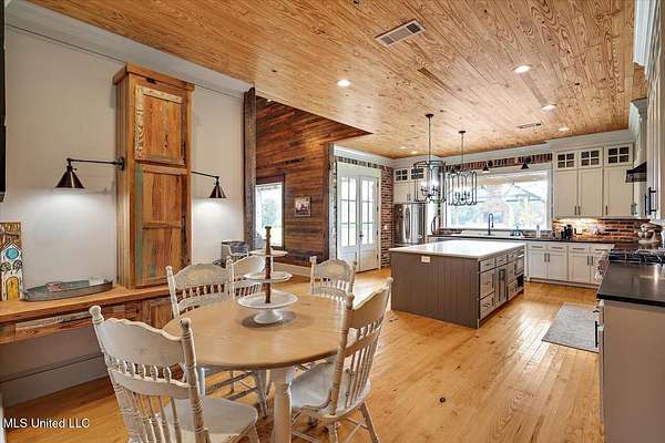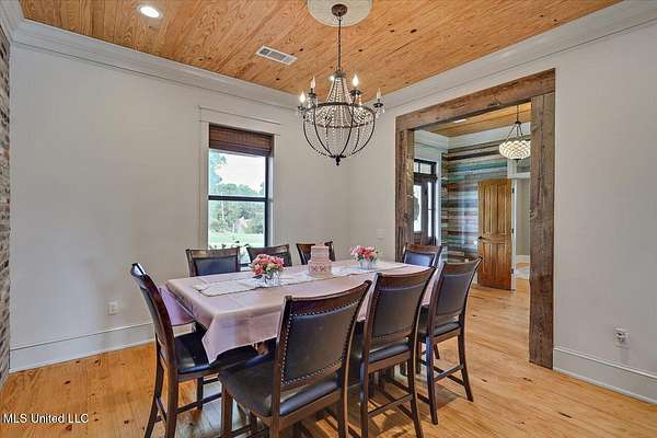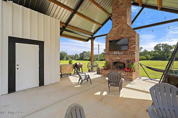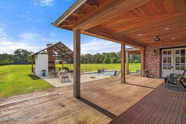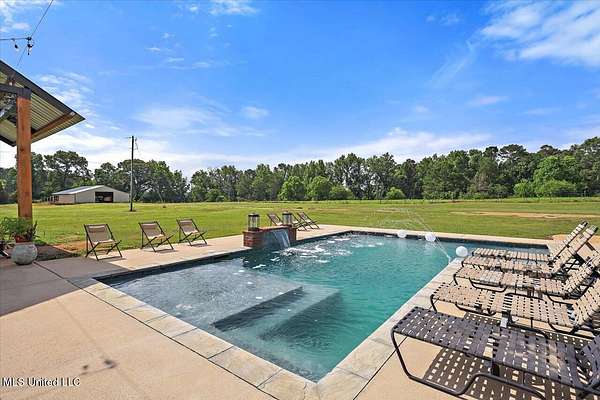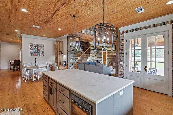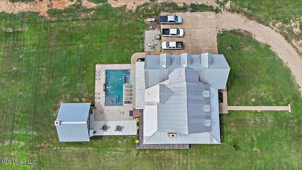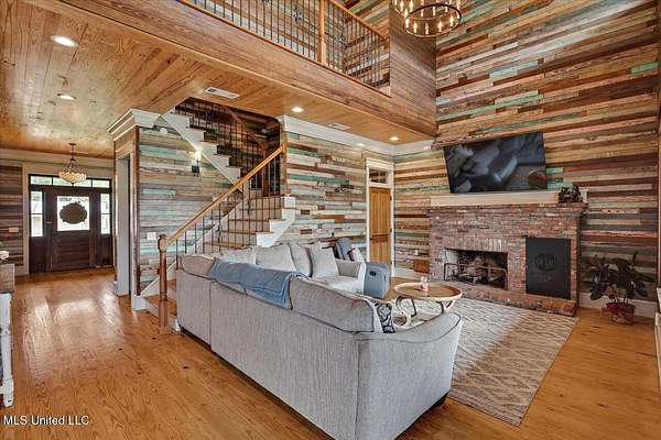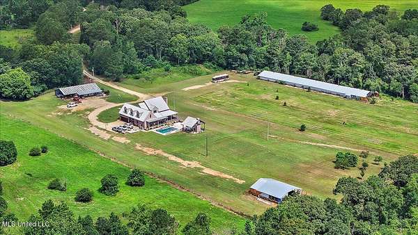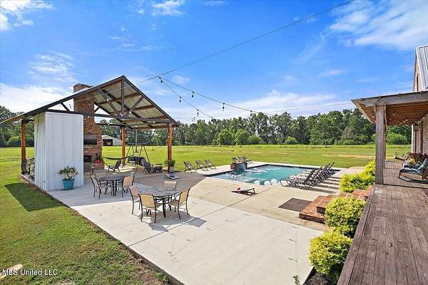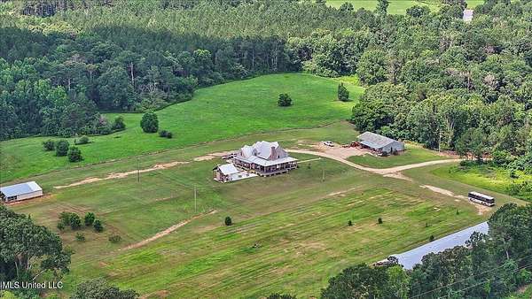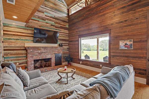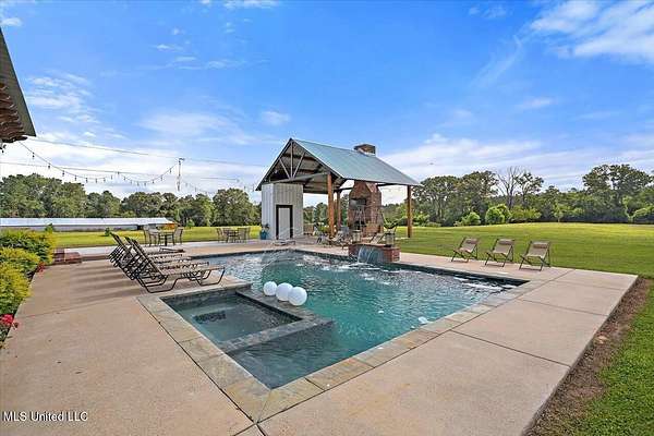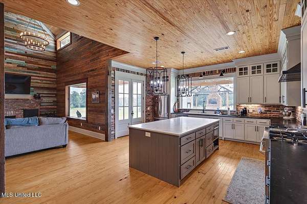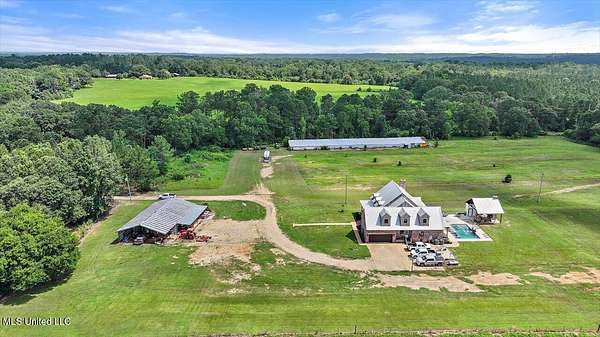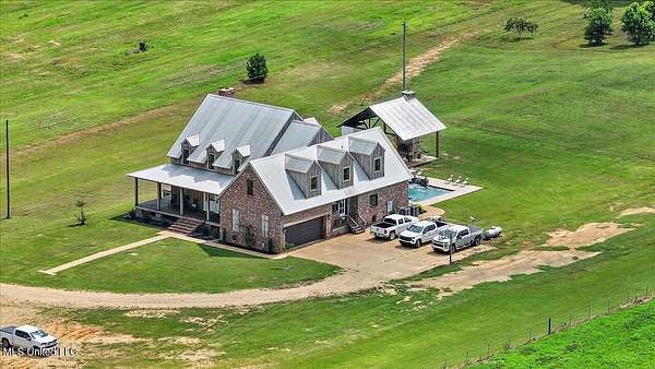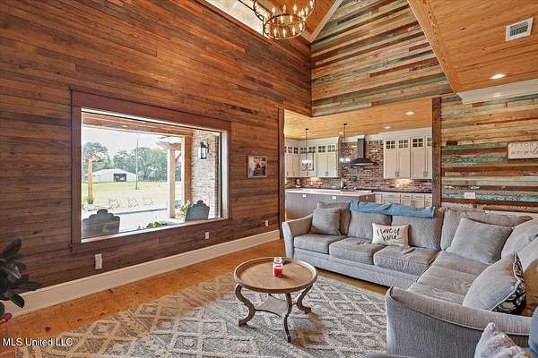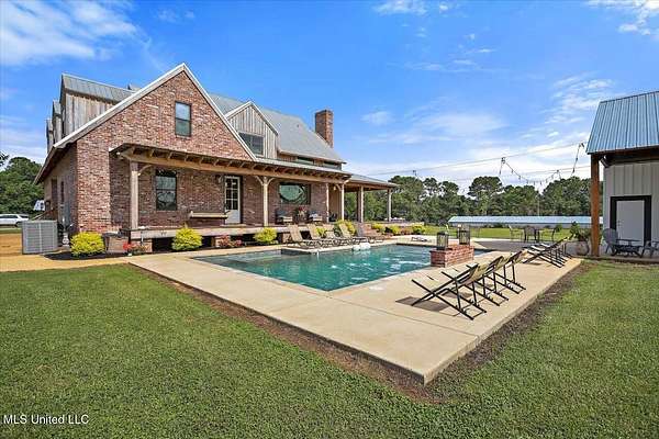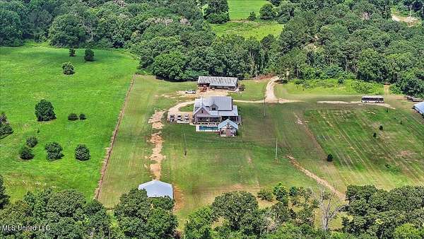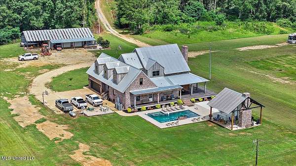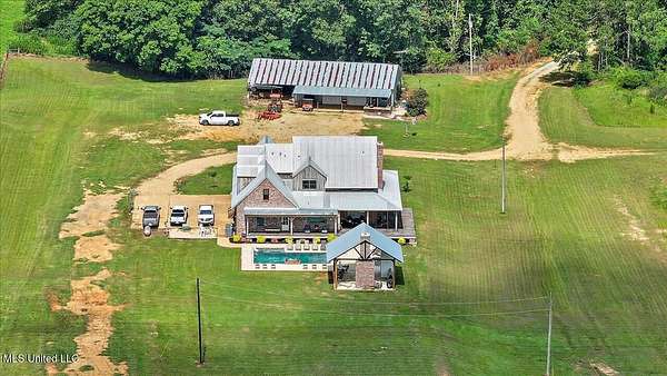 Nestled in a peaceful and private country setting, this exceptional custom-built home offers a rare blend of craftsmanship, elegance, and thoughtful design. From the moment you arrive, it's clear that every detail has been carefully curated to create a truly special living experience. Inside, reclaimed wood walls and tongue-and-groove ceilings bring warmth and texture to the main living areas, while expansive windows fill the space with natural light. The living room, anchored by a stately wood-burning fireplace and soaring ceilings open to the second floor, creates a striking yet inviting focal point. A formal dining room and dedicated home office sit just off the foyer, offering a seamless balance of functionality and charm. The kitchen is a chef's dream-featuring leathered granite countertops, Thor appliances, custom cabinetry, a large island, and a walk-in pantry accented by a beautifully repurposed wood door. The primary suite is a retreat unto itself, privately tucked away with direct access to the pool area. It features a generous walk-in closet and a spa-inspired bath with dual shower heads, a double vanity, and a separate water closet. Nearby, a spacious laundry room with built-ins also serves as a well-designed mudroom. Upstairs, you'll find three oversized sized guest bedrooms. One enjoys its own private ensuite bath and walk-in closet, while the remaining two share a hall bath. Additional features include two versatile bonus rooms, a secondary full laundry room, and a convenient kitchenette-perfect for extended guests or family. Step outside to a true outdoor sanctuary. A wraparound porch with a cozy fireplace overlooks the backyard, where a gunite pool with tanning ledge and hot tub awaits. You will love the outdoor kitchen that is complete with a large brick fireplace and large entertaining area. The workshop offers ample space and includes a fully appointed One-bedroom, one bath Mother-in-law suite. A second outdoor kitchen is located just off the suite making the perfect setting for entertaining on nice evenings. There is abundant storage in a separate tractor shed and storage barn. This home offers a rare opportunity to enjoy the beauty of country living without sacrificing comfort or sophistication. Schedule your private tour today and discover all that this extraordinary property has to offer.