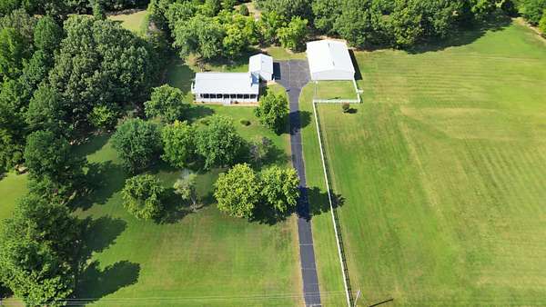 This immaculate country estate sets on 7 beautiful acres featuring a charming front porch+screened porch & tons of storage in the 3car garage w/sewing rm & indoor carwash capability.For hobbyists & entrepreneurs, the incredible 50x75 red-iron commercial shop is a true showstopper--3,700sqft w/office,recreation rm,gas heat,wiring for welding,mini-splits & high-speed internet.Perfect for car enthusiasts,small business or endless projects.Like-new 3BR,2BA home offers an inviting great rm w/hardwood flrs & gas fireplace,that flows into the updated kitchen w/quartz,stainless appl.,pantry & Alexa-controlled smart lighting & disposal.Primary suite has hardwood flrs, sliding drs to the deck, luxury BA w/dual vanities, frameless walk-in shower & large closet. 2guest BRs, remodeled laundry rm & versatile upstairs bonus rm w/mini-split sys.Outdoors is a partially fenced pasture,RV pad,underground drainage sys & serene views!30 minutes to the new Ford BlueOval City Plant.