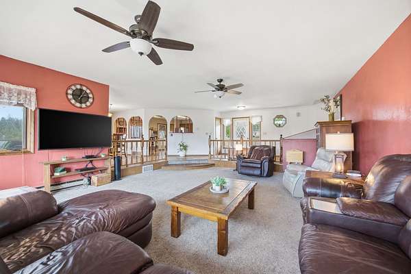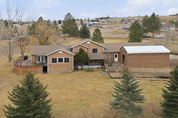 OPEN HOUSE this Sunday 11am to 1pm. Spacious 5 bedroom home in Stevensville on a park-like 7.62 acres with Bitterroot Mountain views. This is a stunning piece of property with a large home (2,907 sqft.) and ample outbuildings. Upstairs features 3 bedrooms and two full bathrooms including the primary bedroom with an en-suite bathroom, two closets, and a small office nook! Fully finished basement (896 sqft.) features 2 additional bedrooms (making a total of 5) with it's own quaint kitchen and private walk out patio. Previously used as apartment / suite. Convenient 3-car attached garage. Newly constructed 22' x 32' shop. Tons of outbuildings & additional sheds. Fenced garden. Natural gas. Two pellet stoves. So much potential! 25 minutes to Missoula.