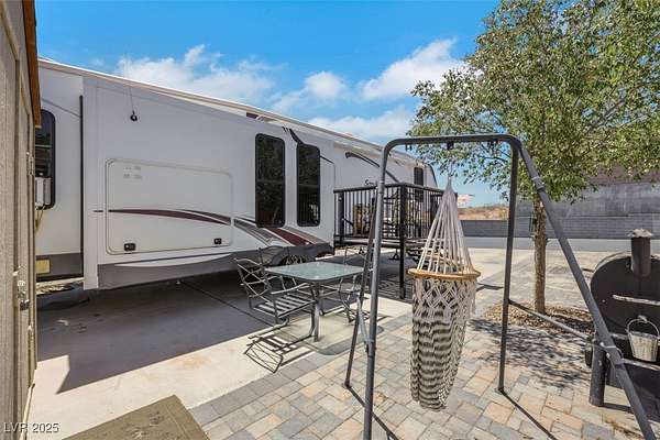 This beautiful RV lot is located in the Historic town of Boulder City. Located in the Boulder Oaks Community Resort. The lot is located in a area that has no neighbors in the front of you and views in the back. It comes with an all weather shed that is 10' X 12', great for storage or a workshop/craft space.The lot has beautiful pavers running down both sides. Lots of space for your BBQ and Fire pit. Room for two cars along with your RV. The community has a clubhouse, pool and spa, gym, washer and dryers, bathrooms with showers. The RV stairs are available for purchase outside of escrow. This is a highly desired area. Great location near Lake Mead for boating, water sports and fishing. Biking and hiking trails near by. You are aprox. 30 to the strip and airport. Do not Disturb Occupants in the RV. RV is not included in sale.