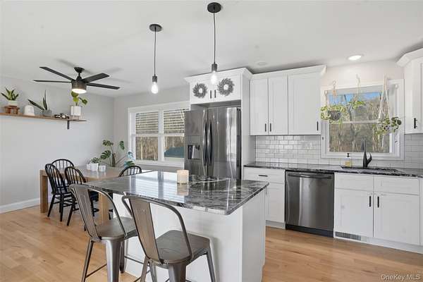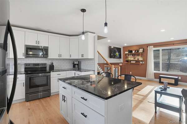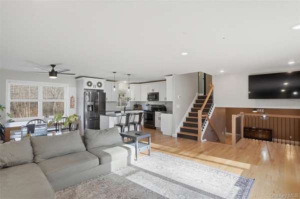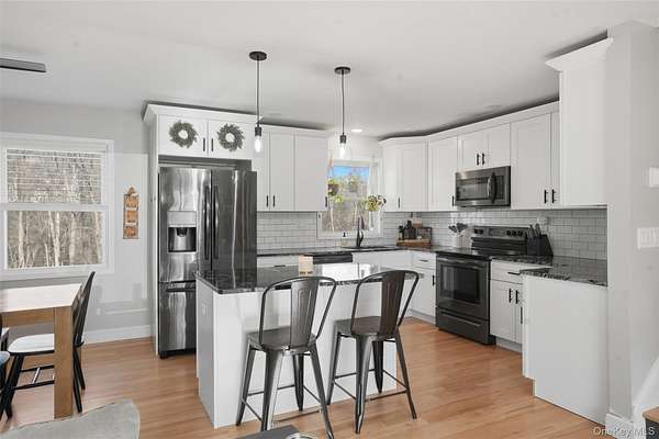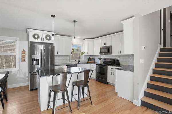 Welcome to this beautifully renovated home set on 2 private acres, offering the perfect blend of modern comfort, thoughtful design, and peaceful surroundings. With over 1,700 square feet of living space, this move-in-ready property features 3 bedrooms and 2 full bathrooms, thoughtfully laid out for today's lifestyle. A charming front porch warmly welcomes you inside, where gleaming hardwood floors and an open, airy layout create an immediate sense of home. The main level offers exceptional versatility, featuring a spacious family room, dedicated home office, convenient first-floor laundry, and a full bathroom - ideal for both everyday living and entertaining. The updated kitchen serves as the heart of the home, complete with granite countertops, stainless steel appliances, and well-appointed spaces that flow seamlessly into the living areas. Upstairs, you'll find three generously sized bedrooms along with a beautifully updated second full bathroom, providing comfort and privacy for all. Extensively reimagined in 2021, the home boasts a comprehensive renovation including new windows, roof, siding, spray foam insulation, central air conditioning, updated kitchen and baths, and premium Trex porch and deck, delivering both luxury and long-term efficiency. A two-car garage enhances convenience, while the property's serene setting within the highly regarded Minisink School District offers the perfect balance of privacy and accessibility - just moments from major highways, shopping, dining, and everyday amenities. Call to make your appointment today!