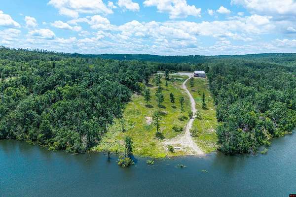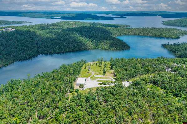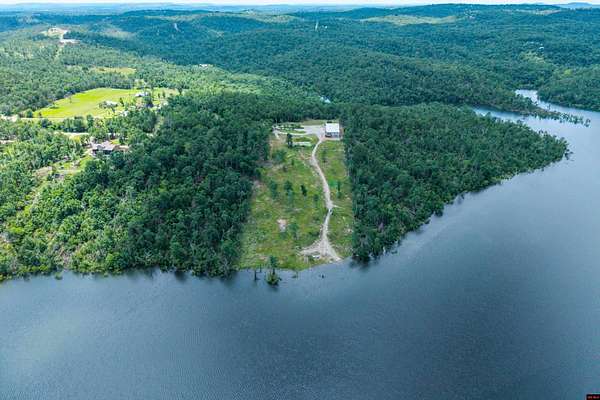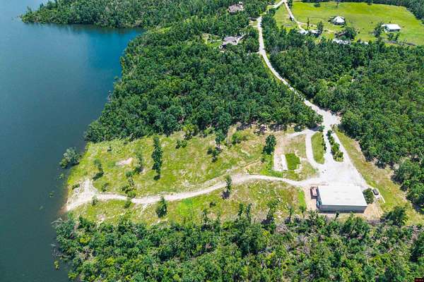 Est $4,609/moRare, end of road location. 8 AC M/L with gov. strip on 2 sides, corners go under water when lake is up. Several building sites perfect for that special lake home, unobstructed Lake views over 100ft deep water across from property, high end commercial constructed barndominium. 1250' living area and 3250' of garage, storage R.V. parking. 5 acres Residential only, 3 AC M/L unrestricted.