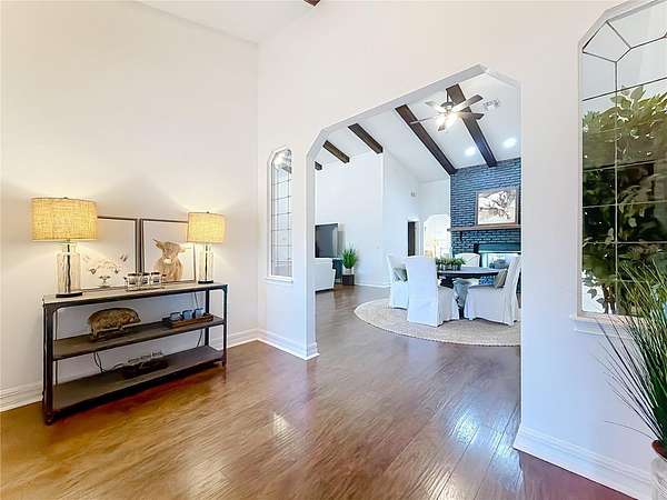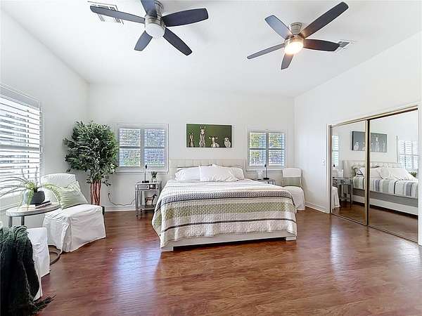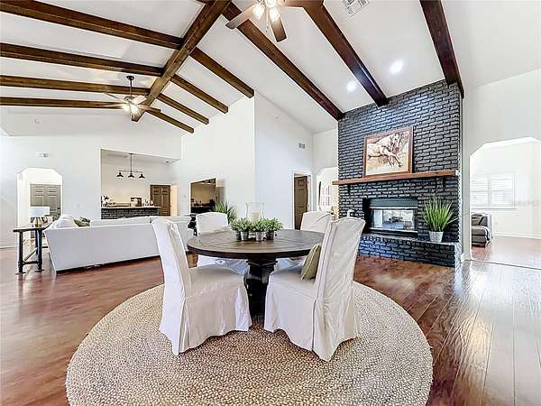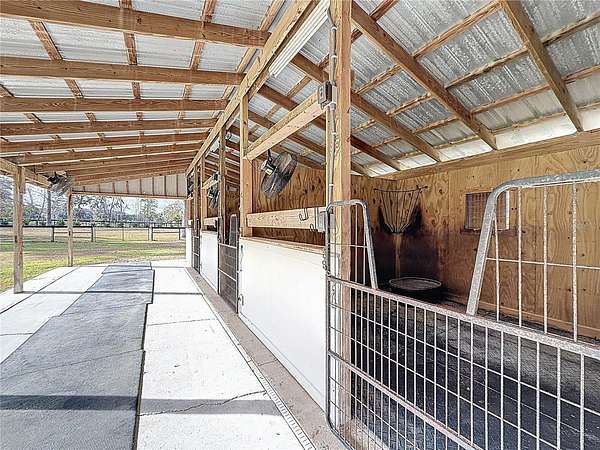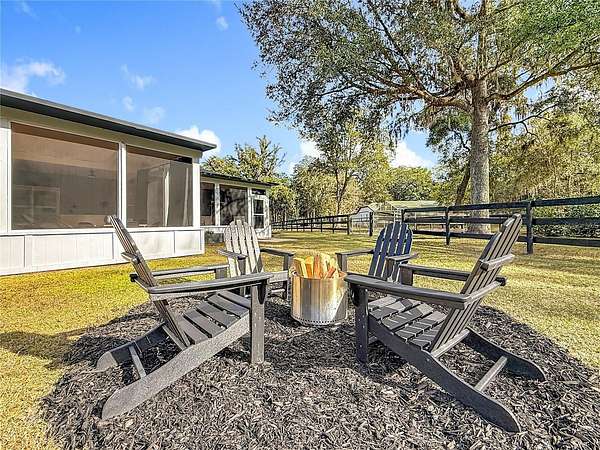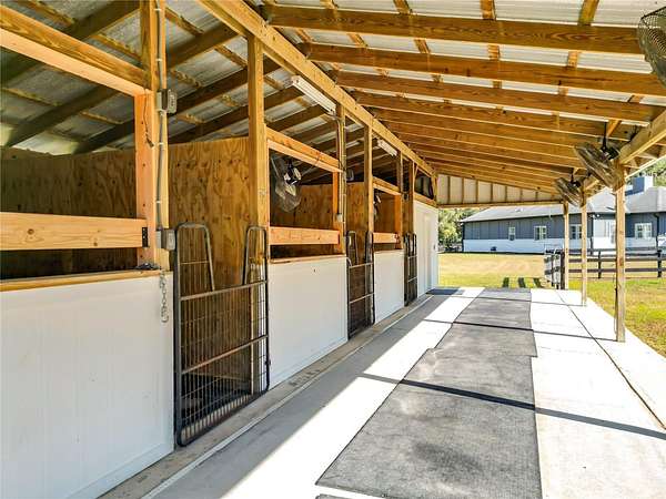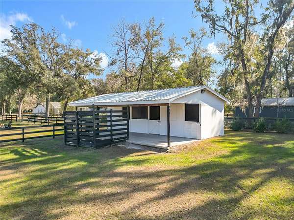 Tucked away along a quiet cul-de-sac in the equestrian-friendly McCully's Subdivision, this impeccably maintained 4.1-acre mini-farm offers a rare blend of modern upgrades, privacy, and purposeful design crafted with both two- and four-legged residents in mind. Fenced and gated, the property welcomes you with a tree-lined driveway that leads past paddocks with new wood fencing towards the oversized garage. The home itself is incredibly eye-catching, with ample curb appeal, freshly painted exteriors, a circular drive for easy navigation, and tasteful landscaping- all surrounded by open pasture and well-seeded lawns that have been lovingly restored over time. Offering a total of 3-bedrooms and 2-baths, the home features an open floor plan with sweeping vaulted ceilings, wood-beamed accents, fresh interior paint, and engineered hardwood flooring that runs throughout. The spacious foyer opens up to the expansive great room, which centers around a striking new gas fireplace with floor-to-ceiling brickwork--a warm focal point for gatherings. The living area is nice and welcoming, complete with a built in wet-bar with plenty of storage space, ideal for those who enjoy hosting Just beyond, the kitchen is designed for entertaining and ease of use with updated stainless steel appliances, ample cabinet and counter space, a large center island, large windows, and plenty of space for a dining set. Each bedroom is generously sized, and the primary suite includes a large walk-in closet, serene views, and a recently refreshed en-suite bath complete with new faucets and dual vanities. One of the bedrooms is currently used as a dedicated office space but features a newly added closet, offering the flexibility for use as a bedroom or a quiet workspace as desired. The lifestyle here expands well beyond the walls of the home. A sprawling screened lanai provides ample space to relax, host, or enjoy quiet mornings overlooking the land. Out back, equestrians will appreciate the attention given to the two barns on property, which provide a total of 6-stalls altogether. The barn to the right features 3-stalls which were recently dug out and reinstalled. There's also upgraded electrical service to both barns, an electric hot water system for the wash rack, new barn fans, exterior lighting, and regular maintenance like moss spraying to ensure the health of surrounding oaks. With no HOA and zoning that supports agricultural use, this property offers freedom, utility, and a peaceful rural setting- all just a short drive from WEC, HITS, and the amenities of NW Ocala. Whether you're seeking a working horse property or a private countryside retreat with modern comforts, this one delivers both with pride of ownership at every turn.