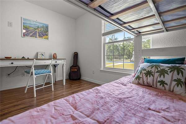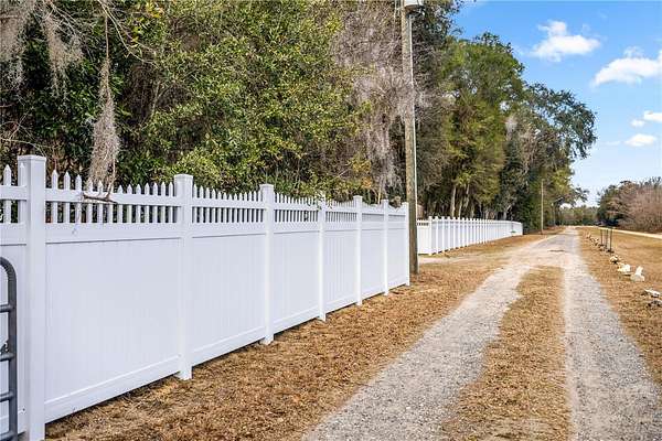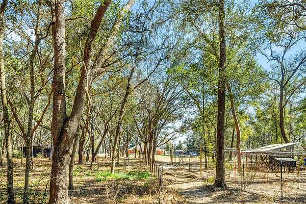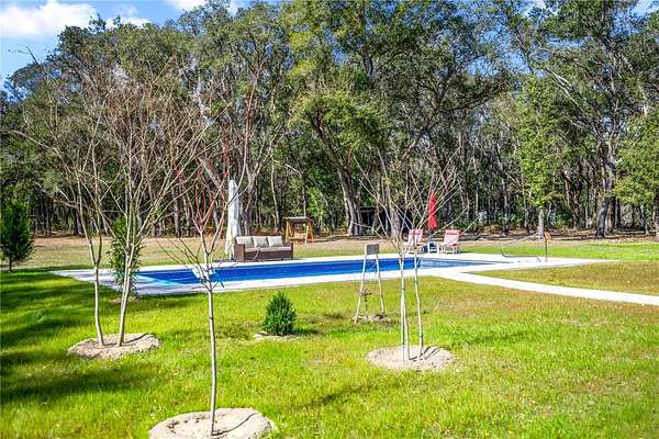 Welcome to your dream retreat! Nestled on 8.65 private acres, this custom-built 4-bedroom, 3-bathroom home with a dedicated office, completed in 2017, offers the perfect blend of modern luxury and rural charm. In 2025, nearly $300,000 in upgrades were added including NEW LOW VOC PAINT that is hypoallergenic inside and out, BRAND NEW HIGH EFFICIENCY AC with UV system for the air ducts which were also deep cleaned last year. An attic fan was also added for energy efficiency. The newly remodeled kitchen has freshly painted cabinets, brand new QUARTZ countertops and 2025 stainless steel appliances including a range. It is a chef's dream! The great room is amply sized for entertaining and opens up to the large covered lanai area. The outdoor area is completely redesigned with a 2025 HEATED SALT WATER VINYL POOL, new BRICK PAVER DECKS and an electric heavy duty pool cover. Gutters were added last year as well as an irrigation system. Owner's suite is huge with an even larger bath featuring a BRAND NEW TUB, new vinyl floor, new cabinets separate oversized shower, and a huge walk-in closet with a door opening to the laundry room. Additional 3 bedrooms are on the opposite side of the home. The 2nd and 3rd bedrooms share a bath with shower/tub combo, and the 4th bedroom is an en suite with its own private bath and all have new cabinets and countertops. Home has tile, and LVP flooring featuring new LVP in all bedrooms 2022. The outdoor is a gardener's dream. There are 20 fruit trees and a full vegetable garden. Also, there are areas for animals that have water run to them and plenty of room to add space for HORSES. There is even a SMALL BARN for horses! In 2025, a new vinyl privacy fence with gates was added to the front of the property to add both drama and privacy. This property also boasts an attached garage that is INSULATED and has a mini split AC system and brand new EPOXY floors, ample storage space in a convenient shed, and a charming treehouse that promises endless adventures for little ones. Hookups for a home generator and a propane tank are in place as well. Embrace the serene privacy and endless possibilities this stunning property offers--your own slice of heaven awaits! All this and NO HOA!!