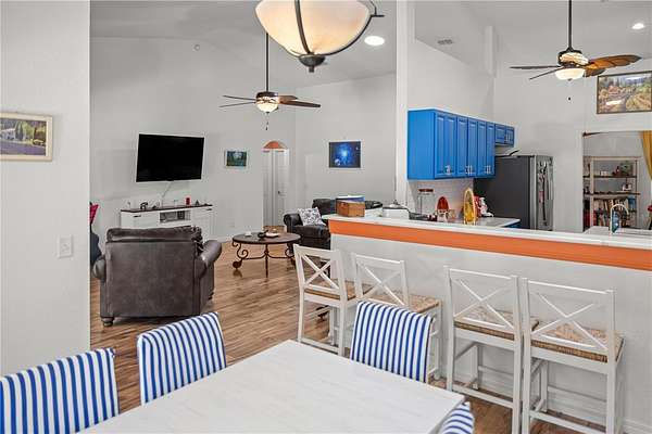 - Built-In Features, Ceiling Fans(s), High Ceilings, L Dining, Open Floorplan, Primary Bedroom Main Floor, Solid Surface Counters, Solid Wood Cabinets, Split Bedroom, Thermostat, Vaulted Ceiling(s), Walk-In Closet(s)