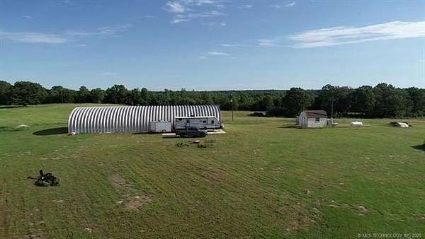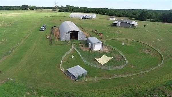 Scenic 300+- Acre Ranch with Home, Creek, Ponds & History - A Rare Oklahoma Gem. Welcome to a truly unique 300-acre property that blends natural beauty, historic significance, and functional versatility. This captivating tract offers a mix of dense hardwoods, open pastures, and gently rolling terrain - perfect for cattle, horses, recreation, or retreat. The property includes a 3-bedroom, 2-bath home with office or dining area, ideal as a primary residence, guest quarters, or weekend getaway. Nearby are multiple barns and sheds for equipment storage, hay, or livestock, including an implement barn and Quonset-style shop. A backup generator to ensure self-sufficiency year-round.