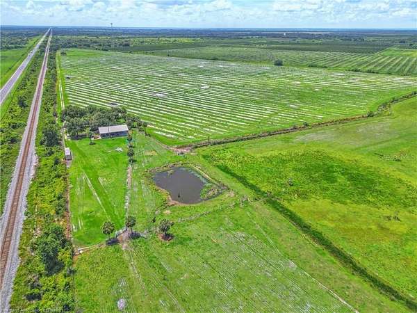 OWNER FINANCING AVAILABLE!! 102.16 acres located approximately 2 miles East of Lorida and 5 miles East of the Sebring Airport and Nascar Racetrac. Known as Triangle Ranch for its distinctive triangle shape. 4,067 of railroad frontage located at the corner of Hwy 98 and CR 621. A 12" cased to 400' permitted well through 4/24/29 with power unit and gear head. Store all your equipment in the 60x40 concrete floor pole barn with electrical service and water supplied from a small 2" well. Property has been recently cleared and ready for the next project.