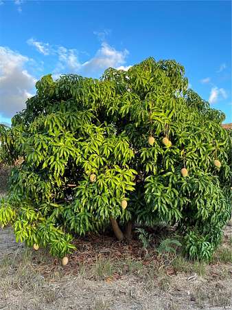 Sustainable homestead, multigenerational living...so many possibilities! Privacy down a long driveway to 2 homes on fully fenced 3.41 acres of fertile farmland. The homes are in rough condition with deferred maintenance. Besides the 2 homes, there is a large greenhouse frame, large concrete block vegetable processing building with water plumbed to it, and 2 carports. Prominently featured on the land is the producing mango orchard of around 30 trees. Also, several miscellaneous fruit trees. Fruit trees are serviced by in-ground water pipe system. Property has Ag water meter for lower water cost for agricultural use. Irrigation piping map, soil analysis and list of mango types are in supplements. Local food production is so needed and encouraged in these times. It can all be done here! Give this currently neglected homestead the love it deserves and transform it into a food forest...you'll have a great start. So much potential here! One home is vacant, the other is occupied by tenants on month to month lease. Do not drive down driveway without an appointment.