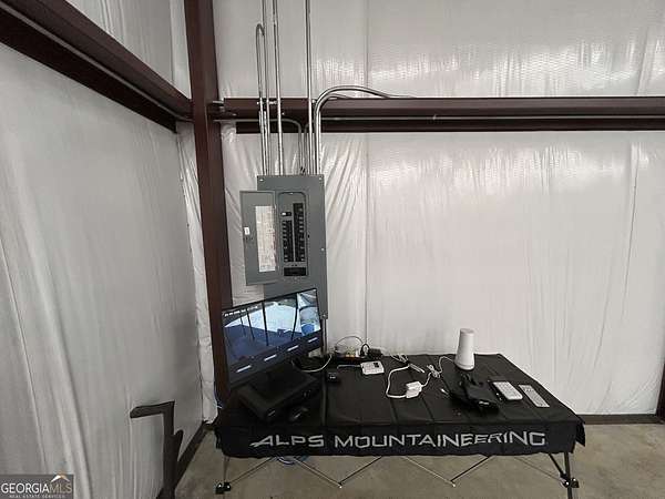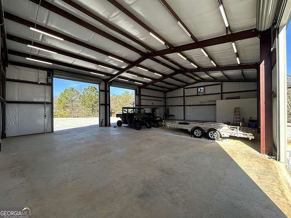 A quality constructed red iron workshop situated on approximately 12.54 acres, with additional adjoining acreage available for purchase. The structure measures approximately 50' x 60' and features 14' wall height with a 16' ceiling height at the ridge. Improvements include three automatic roll-up doors, two standard entry doors, full insulation, and a temperature-controlled exhaust system. The building is equipped with a full bathroom, alarm system with cameras, fiber optic internet service, electrical utilities, and a drilled well. The land offers rolling topography with great views. An additional 19.3-acre tract adjoining the property is currently listed for sale, providing an opportunity for expanded acreage. The property presents multiple potential uses, including the construction of a new residence or the conversion of the existing structure into a barndominium.