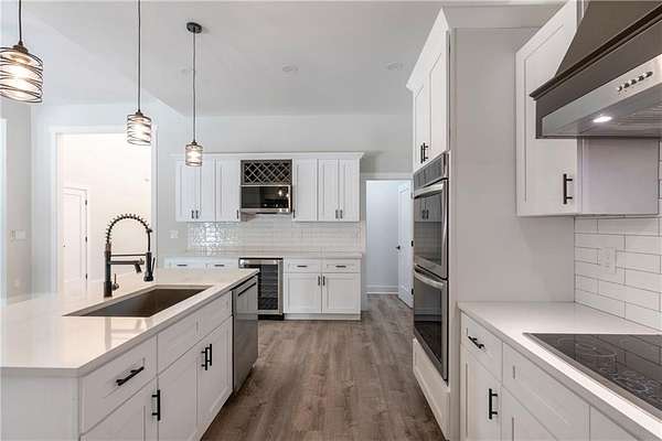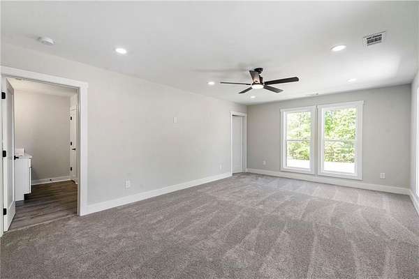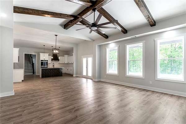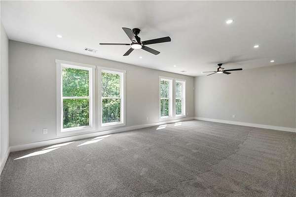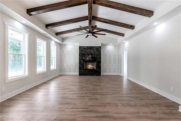 Welcome to this stunning new construction nestled in the charming Cambridge neighborhood, where timeless design meets contemporary comfort. A dramatic two-story foyer, illuminated by a striking chandelier, creates an unforgettable first impression as you step inside. The thoughtfully designed main level features an open-concept layout perfect for both everyday living and entertaining. The well-appointed kitchen overlooks the dining area and a fireside living room with soaring vaulted ceilings, creating a warm and inviting atmosphere. The spacious owner's suite is a true retreat, offering a generously sized bedroom and a spa-inspired bathroom complete with a soaking tub, elegant walk-in shower, and refined finishes. Two additional main-level bedrooms share a full bath. A large walk-in pantry and a well-equipped laundry room further enhance the functionality of the main floor. Upstairs, you'll find a private guest suite, a room ready to become a movie theater or home gym, and a versatile recreation room that could easily serve as a fifth bedroom. Offering the ease of one-level living with the added bonus of an expansive upper floor, this home truly has it all! Situated on a serene 2.01-acre lot, this property offers exceptional privacy and natural beauty. Enjoy peaceful mornings and relaxing evenings on the expansive patio, surrounded by the sights and sounds of nature. Located in Covington-known as "The Hollywood of the Souththis vibrant and growing community blends small-town charm with modern conveniences. With easy access to I-20 and minutes from Covington Square's local shops and restaurants, schools, the Cricket Frog Trail, and Lake Varner Reservoir, this home blends upscale living with the serenity of a setting designed for both recreation and relaxation.