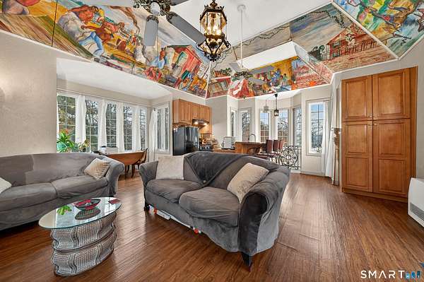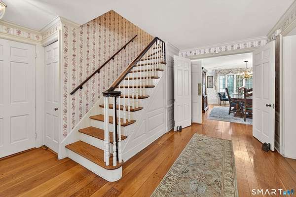 Steeped in rich local heritage, (circa 1870) this grand Colonial, was originally owned by the Hammer family, founders of MIF. This 15-room center hall Colonial offers over 5,000 square feet of living space with 9 bedrooms and 7.5 bathrooms, beautifully showcasing the craftsmanship of a bygone era. Architectural details define the home's main level, including a formal salon, a stately library with richly paneled walls, and a striking fireplace with dentil molding and marble surround. A spacious dining room provides an elegant setting for entertaining, while the updated kitchen blends modern functionality with the home's timeless character. The second floor features generously sized bedrooms, with updated en-suite bathrooms, offering both comfort and privacy. The third floor presents a truly special feature an extraordinary Norwegian room, handcrafted by a Danish artisan and complete with two charming built-in beds, adding a rare architectural element. Just off the patio, the Garconniere guest house, added in 1948, offers additional private accommodations ideal for guests, extended family, or rental income. The home is currently utilized as housing for vetted traveling nurses and medical professionals, the property presents exceptional versatility and potential income opportunity. Whether envisioned as a grand private residence, multigenerational estate, or investment property, this remarkable home offers combination of architectural distinction, space, and enduring legacy.
