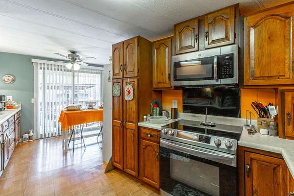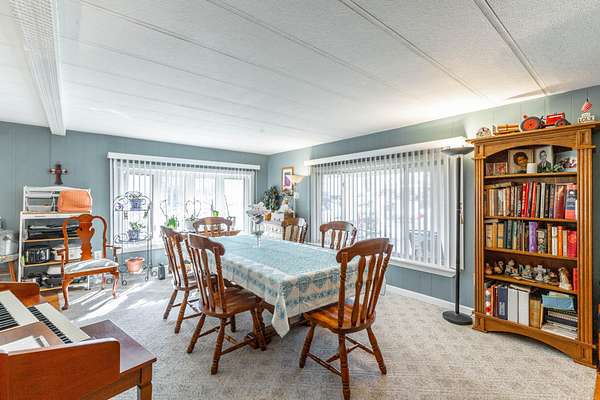 The primary home is a manufactured home with 3 bedrooms, 2 full baths, a living room, dining room, kitchen, den, and laundry room, and a 2-car attached garage.