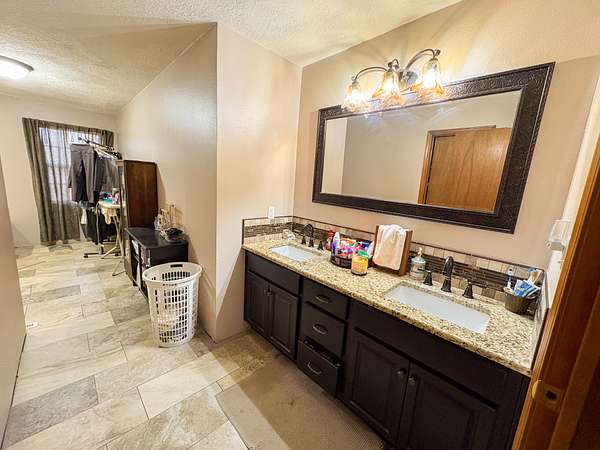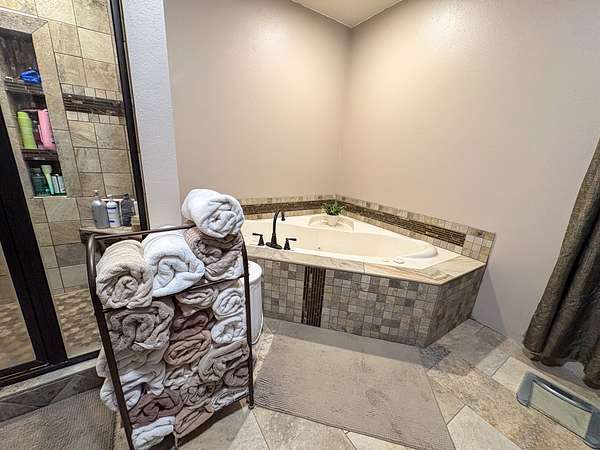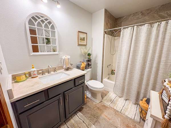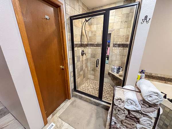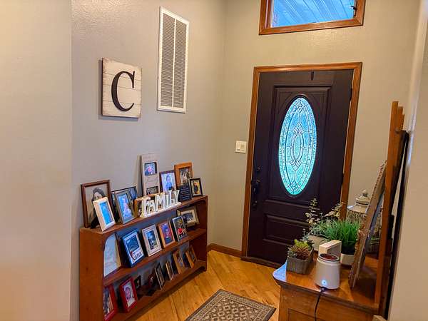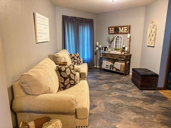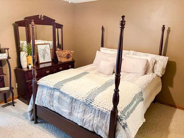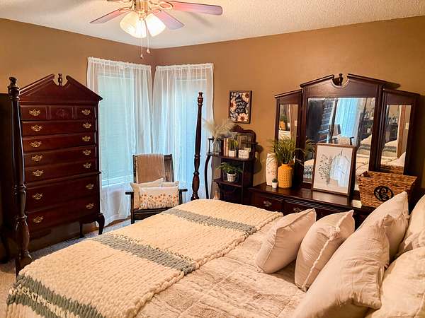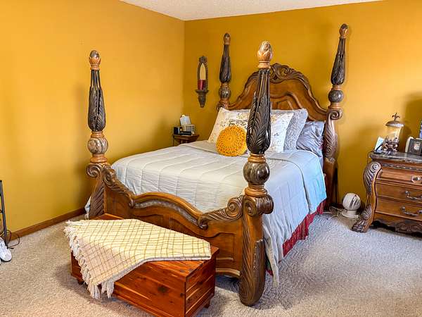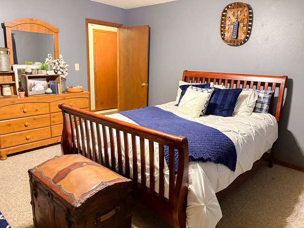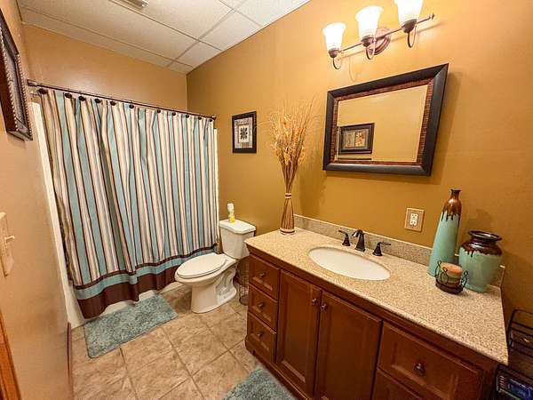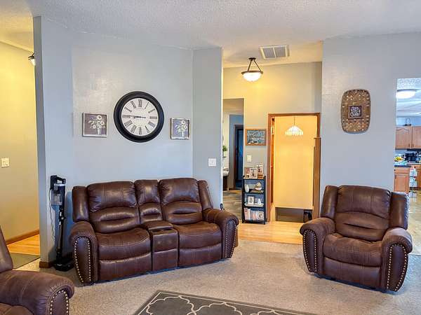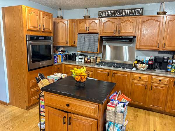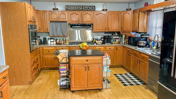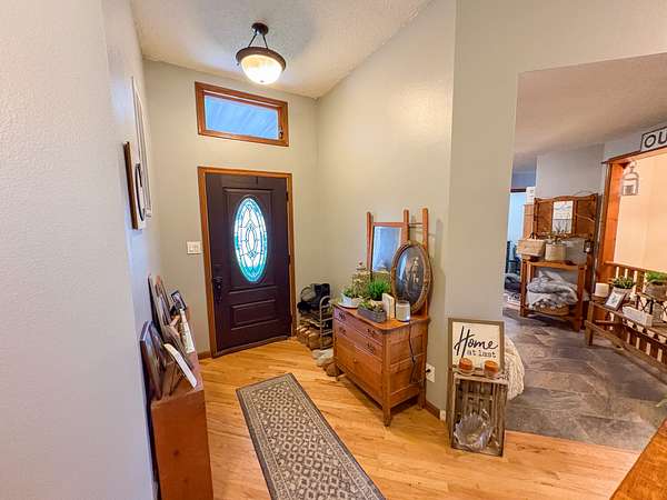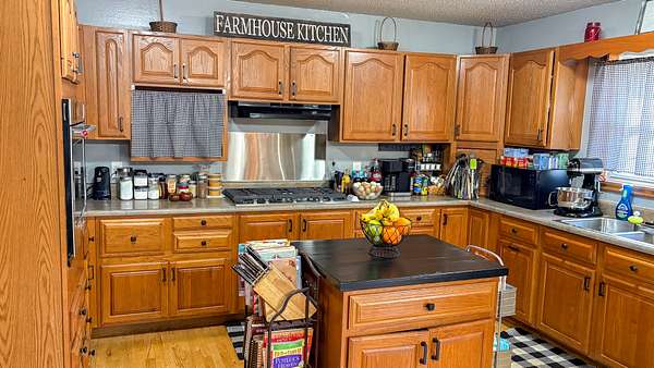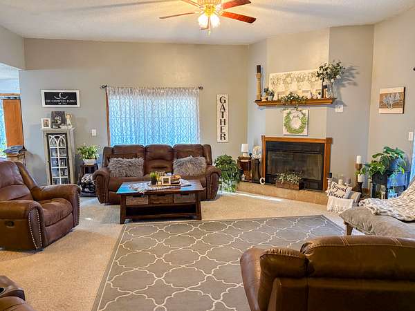 When you step inside this stunning home that has 6 total bedrooms and 4.5 total baths, you will find the heart of the home is the large kitchen, featuring custom-built oak cabinets, true hardwood flooring, and updated stainless KitchenAid oven, propane stove, and dishwasher--ideal for preparing meals and hosting gatherings. Just off the kitchen, sits a welcoming living room with 10-foot vaulted ceilings and a wood-burning fireplace, creating a warm and inviting atmosphere. A sitting room/formal dining room sits just adjacent to the kitchen, along with the main-level laundry for convenience. This level also features a walk out deck for enjoying morning coffee or watching stunning sunsets. Additionally, there is a large master suite highlighted by the spacious closets and bathroom. The bathroom features a walk in tile shower, double vanity, and jetted garden tub!