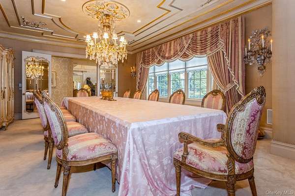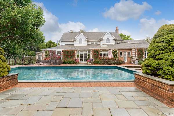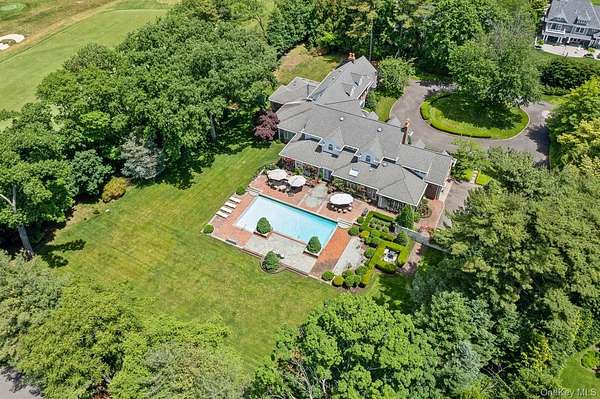 Built to Perfection with 314 Feet Frontage of Stunning Golf Course Views - This majestic brick Georgian Colonial on 2+ beautifully landscaped acres is a masterpiece of opulent design and luxury living. This sophisticated home is located in the most desired private location "on the hill" with breath-taking sunsets and rolling golf course views. Offering 10,000+ square feet of luxurious living space, this manor includes seven bedrooms, six full baths, and three powder rooms. Every detail was thoughtfully selected and quality crafted, from the tile, carpeting, and inlaid wood floors to the exquisite ceiling trim work and three ornate fireplaces. Upon entry you will find a dramatic two-story grand entrance with circular staircase, a spacious family room appointed with rich woodwork and detail evident with the built-ins, custom coffered ceiling and fireplace enhancing it's warm and inviting ambiance. Adjoining is a banquet-size formal dining room, and an elegant formal living room with fireplace that has fairway views as long as the eye can see. The gourmet kitchen has a large center island that opens to a welcoming breakfast room. The north wing hosts the lavish primary en-suite with fireplace, two separate full baths and three spacious walk-in closets. An additional large en-suite bedroom, gym, laundry/mud room with full-sized refrigerator and freezer, and two-car garage complete the north wing. The south wing hosts two powder rooms, a serene family room, back staircase to the second floor, and an additional two-car garage. The second floor brings you to two en-suite bedrooms, three additional bedrooms, a hall full bath, and vast storage space. The basement level includes a second laundry room, storage space, and limitless possibilities. Outside features a 60x20 heated in-ground pool, expansive blue-stone patio and breathtaking fairway views making this ideal for relaxing and entertaining. Just twenty miles east of Manhattan, this magnificent home is mere minutes from golf courses, schools, stores, restaurants, and parks. Award-winning Garden City School District., Additional information: Appearance:Excellent,Interior Features:Marble Bath,Separate Hotwater Heater:y