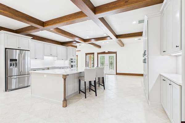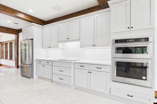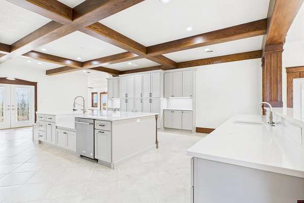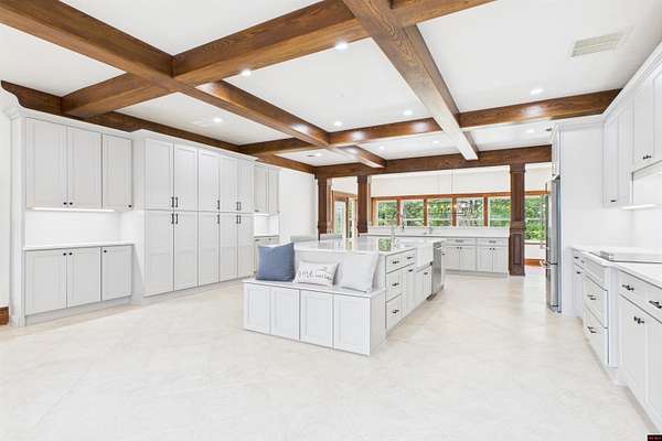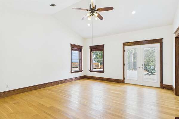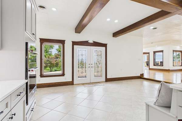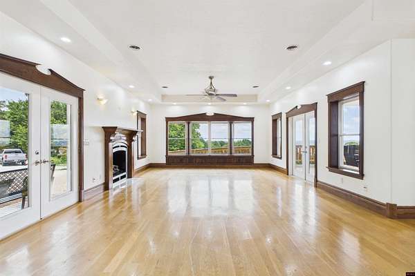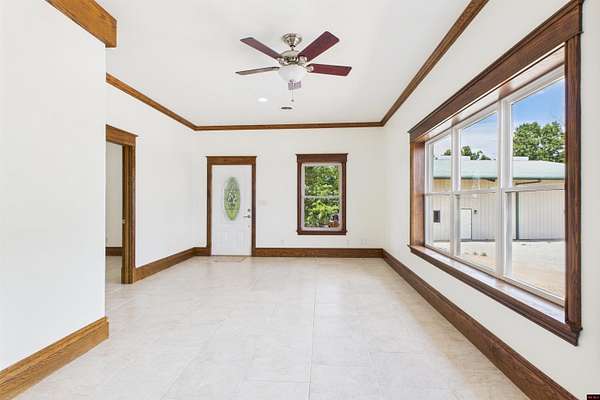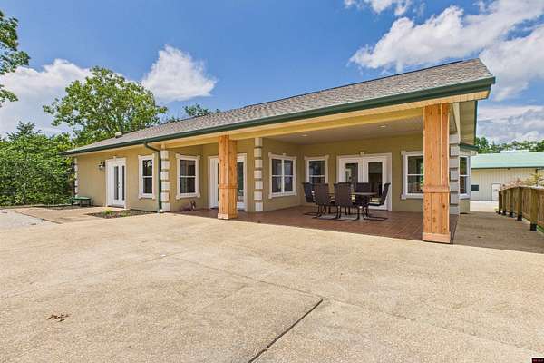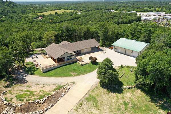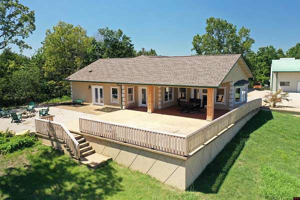 The views will never get old from this beautifully updated 3,542 sq ft, 3-BR, 2.5-BA home on 5.6 acres m/l. Featuring a brand-new custom kitchen with a huge island, stone counters, under-cabinet lighting, radiant floor heat, and KitchenAid appliances. The split bedroom layout includes two master suites, one with a bath built as a safe room. The oversized living room offers a gas log fireplace, large windows, and a cozy bay window seat with gorgeous views of the Mountain Home area. Other features include multiple areas for outdoor entertainment, hardwood and tile floors, custom trim, on-demand hot water, backup generator, fresh paint inside & out, a new roof, and all city utilities plus a well for outdoor use. There is plenty of room for your toys with an impressive 60x60 red iron shop with 16’ sidewalls, 12x14 overhead door, radiant heat, full bath, H & C office, and a private covered porch. A rare property that blends comfort, space, and high-end features in a peaceful setting!