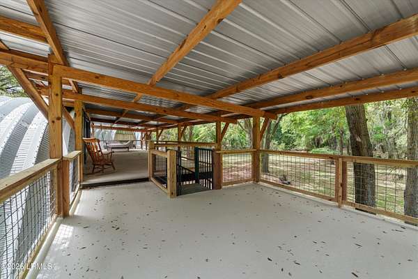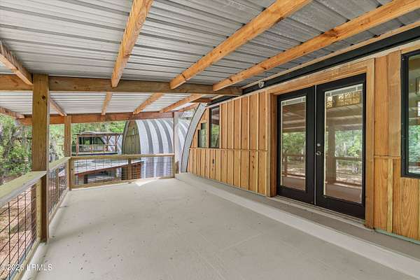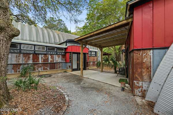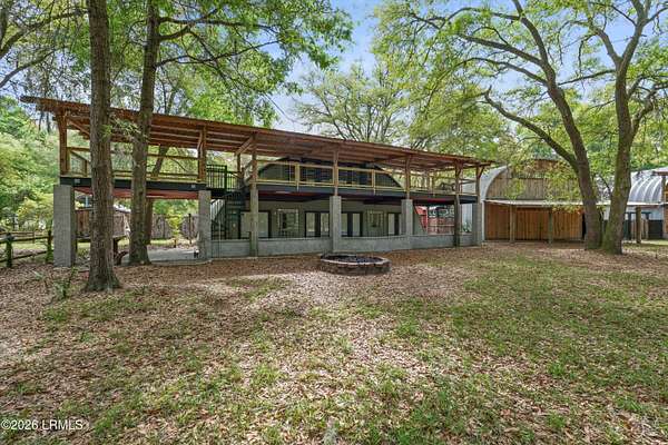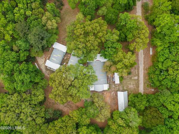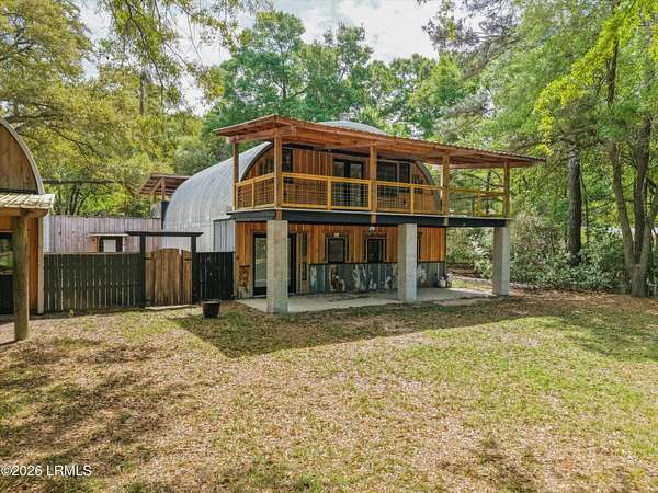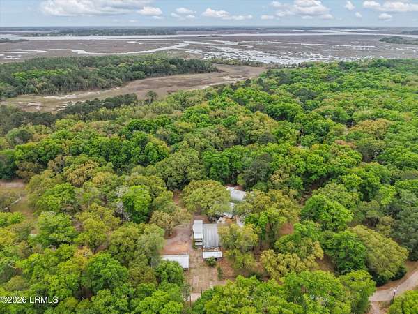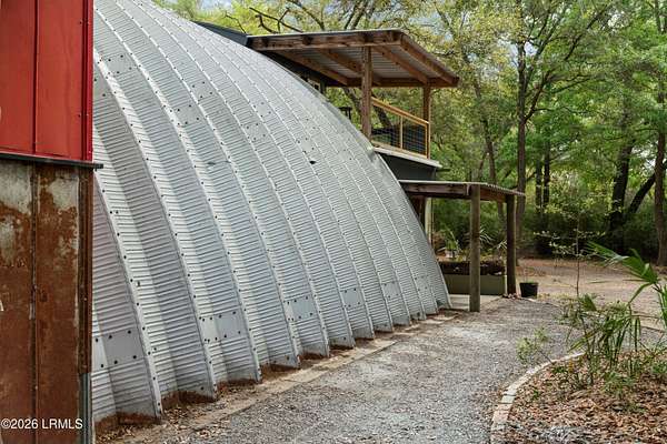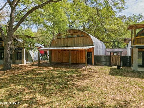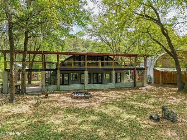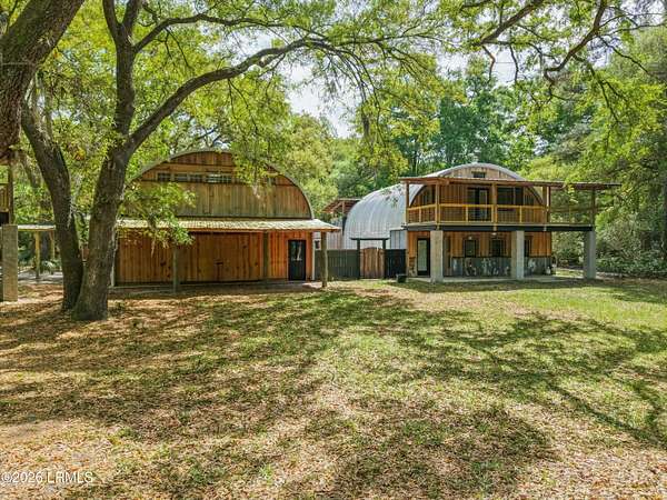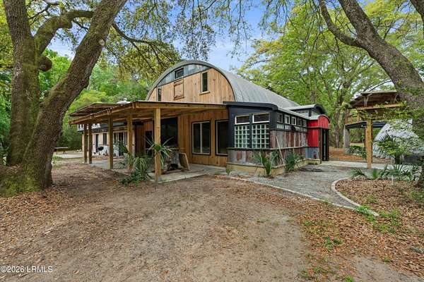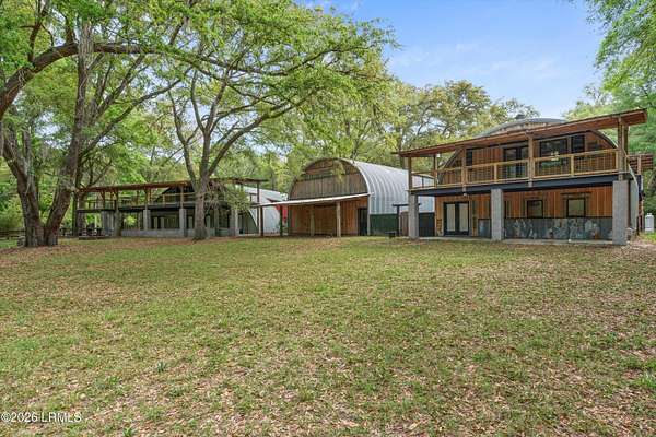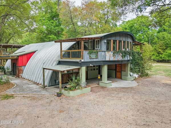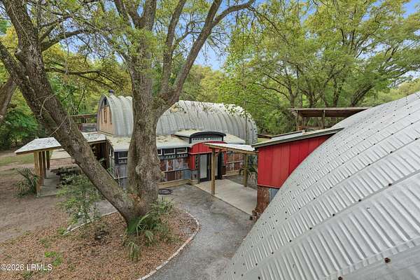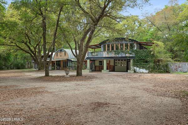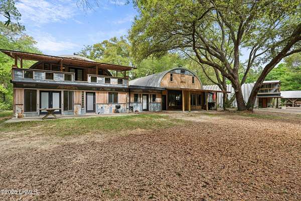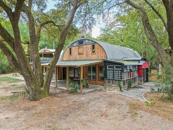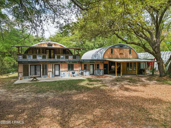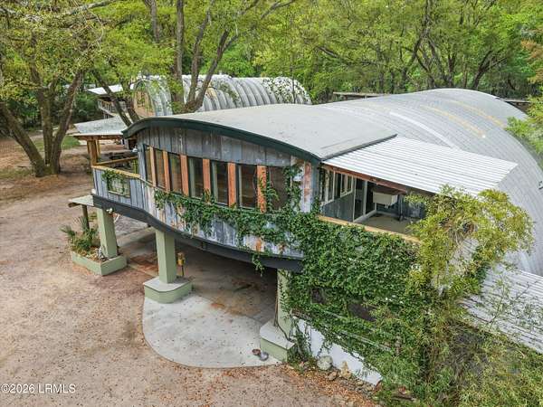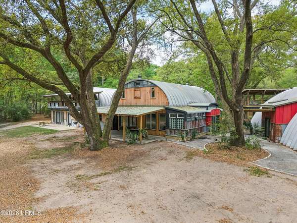 Tucked away down a quiet dirt road on 4.83 private acres on Coosaw Island, this is not just a property, it is an experience. Bold, intriguing, and unlike anything else on the market, this extraordinary compound features three Quonset structures, two separate storage areas, no HOA, and limitless potential for the buyer with vision. If you have been searching for something cookie-cutter, keep driving. If you have been searching for something unforgettable, versatile, and wildly full of opportunity, this is it. Surrounded by privacy and natural beauty, the setting feels peaceful, tucked away, and retreat-like, offering the kind of seclusion that is increasingly hard to find. Whether you envision a private compound, workshop-driven live/work property, automotive haven, event venue, creative retreat, getaway, storage compound, or an inspiring multi-use estate, the possibilities here are expansive. Quonset 1 offers approximately 3,000 square feet on the main level and 2,340 square feet upstairs. The lower level has been used as a large open workshop space, ideal for woodworking, automotive projects, equipment storage, or other hands-on pursuits. Upstairs, the space transitions into living quarters complete with kitchen, bath, and balconies that invite outdoor living and overlook the peaceful setting. Quonset 2 is unfinished both upstairs and down, creating a blank canvas for expansion, customization, or a completely new vision. Workshop, studio, event space, storage, additional living area, showroom, or hobby space, this structure is ready for the next chapter. Quonset 3 mirrors the impressive scale of Quonset 1, with approximately 3,000 square feet on the main level and 2,340 square feet upstairs, and is fully finished and functional on both levels. This structure offers true living flexibility and opens the door to guest accommodations, rental use, multigenerational living, or a private residence within the compound. With large open interiors, flexible functionality, private acreage, and a setting that feels worlds away, this property is tailor-made for the buyer who sees opportunity where others see ordinary limits. Car collectors, woodworkers, creatives, entrepreneurs, event visionaries, homesteaders, investors, and those simply craving a private and unforgettable property will immediately recognize how rare this offering truly is. This is more than real estate. It is one of the most unique property experiences you will ever encounter.