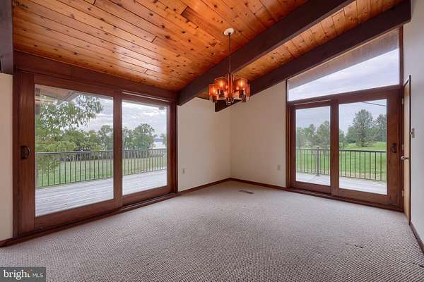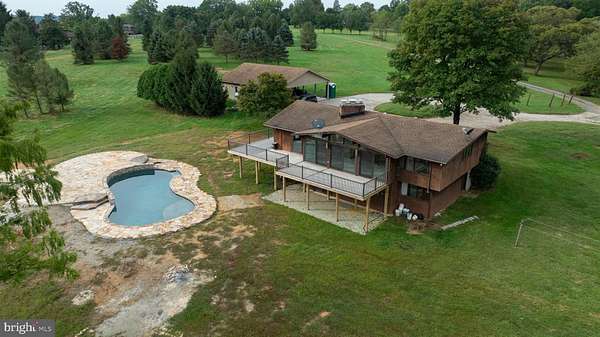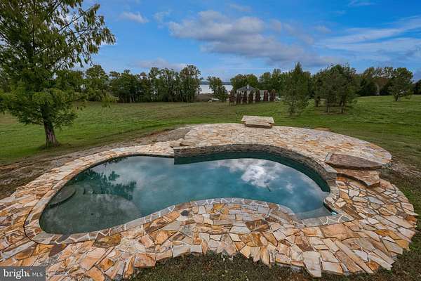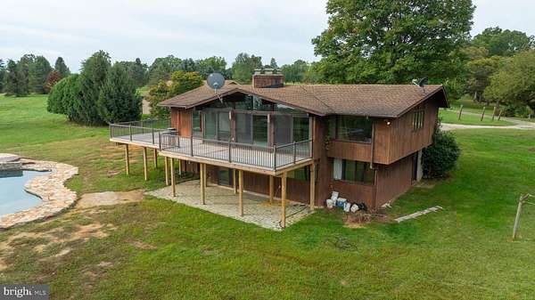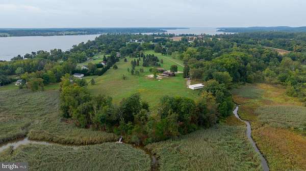 Welcome to your private waterfront paradise on the Elk River! In a stunning setting on 30+ acres, the home beckons those seeking serenity and an abundance of land to call their own. A former Christmas tree farm, the property ranges from mature forest with towering trees, to sprawling, tillable meadows, to marshland, beach, and waterfront. You'll love the house, designed with an abundance of glass to maximize the views of the sprawling landscape and the bay beyond. It's an Acorn Deck House (learn more at deckhouse.com), which has it's own well-deserved fan base. Entering the front doors, you'll be greeted by a wide open living space with vaulted ceilings and a wall of windows. In this space is the large fireplace, and next to it the spacious, custom kitchen, designed thoughtfully with entertaining in mind. The spacious deck wraps around the rear of the home overlooking the pool, a wonderful place to unwind and take in the views. Also on the main floor is a large space overlooking the water that's been cleared out to make way for what is begging to be a gorgeous primary suite. Downstairs, you'll find four spacious, daylight bedrooms, with 3 of them having bay views and patio doors opening at ground level with the pool just beyond. One features a private bath of its own, along with a second full bath that serves the remaining guest rooms. This level also features a spacious laundry area and the utility room. Note that a major upgrade completed by the owners is the installation of a geothermal system for efficiency of heating and cooling. Back outside, you'll find the pool an incredibly beautiful space; custom designed by the owners, it's practically brand new, a concrete pool build with only the best in mind. Roaming the outdoors, you'll find wildlife to be a part of life here with bald eagles having a nest on the property, a herd of deer that regularly comes through, along with lots of other creatures. Fish in the creek and the Elk River and the bay beyond, or hunt, or just soak it all in. A floating dock is in place for smaller boats, and a new dock could be build for larger boats and to access to the beach beyond the marshland. With your finishing touches, this home can become the haven of your dreams, or a stunning vacation rental. Homes in a setting like this don't come along often, schedule your private tour today and experience the glory of waterfront living!