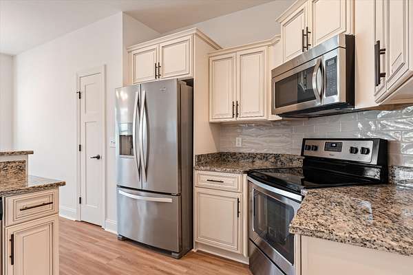 - Dishwasher, Electric Oven, Electric Range, Ice Maker, Microwave, Refrigerator, Stainless Steel Appliance(s)