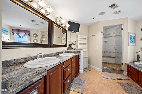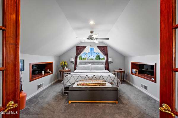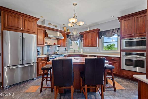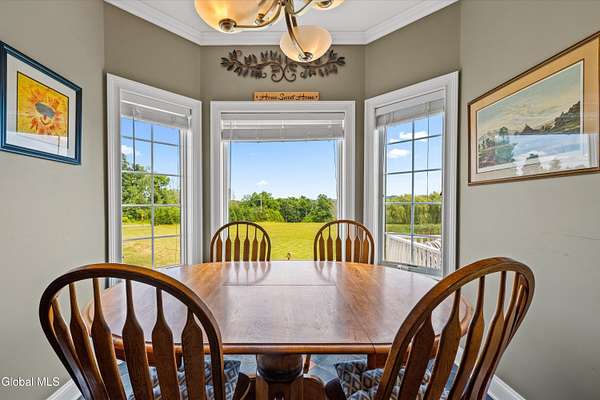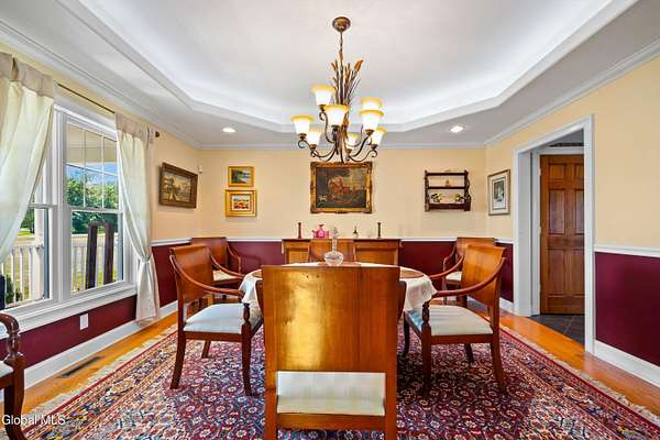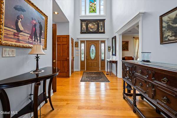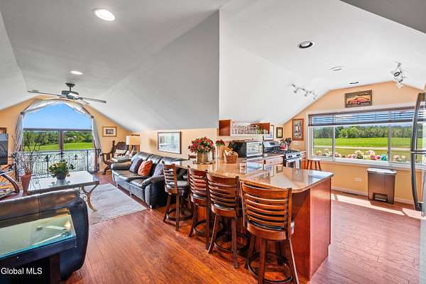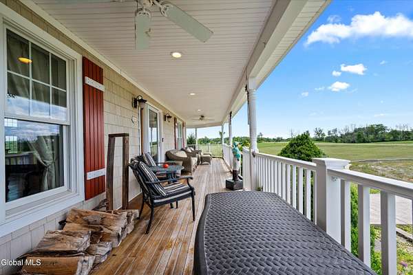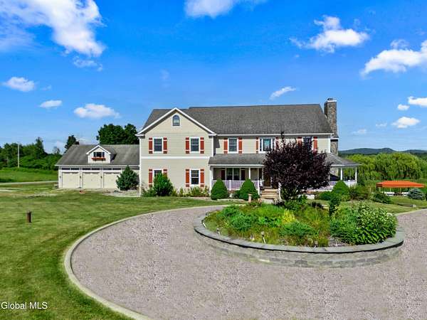 This exceptional 17-acre Saratoga County estate near the Hudson River, offering unparalleled panoramic views and endless possibilities. This rare property is ideal for multi-generational living, equestrian use, or creating your own private compound. The main residence spans over 4,500 sq ft of luxury living space featuring soaring double-height ceilings, radiant-heated floors, a gourmet chef's kitchen, and a wrap-around porch designed to capture the views. The ensuite primary retreat includes a spa-like bath with a steam shower and jacuzzi tub. A finished walkout basement with bedroom, full bath, and bonus area provides flexible space for guests, in-laws, or extended family. Additional highlights include a formal dining room, exercise space, 7-car garage bays, central air, and unmatched natural surroundings. This is truly a one-of-a-kind property where luxury, privacy, and versatility meet. Just mins from downtown Saratoga Springs, the race track, SPAC, Lake George, & local farms. Also available: $1,000,000 with approx. 5 acres (pending subdivision approval) and additional acres available - please contact listing agent #2 for more info/details Price change reflects the owner's motivation to sell the house and entire property.