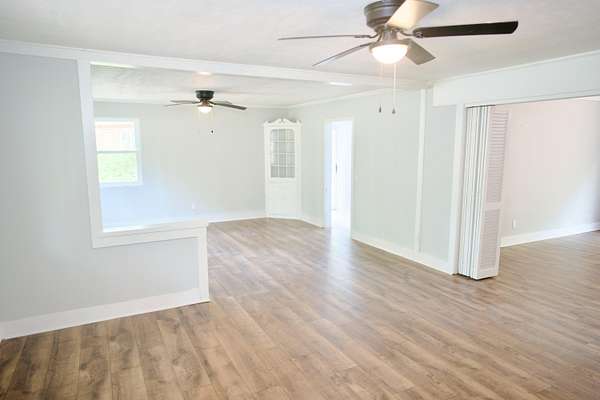 Welcome to this stunning, fully renovated 3 Bed/2 Bath Ranch Homestead in charming Williston, SC.! Just 30 minutes to Aiken, a 1 hour 45 minute drive to Savannah, and an hour to both Columbia and Augusta! This home features a brand-new metal roof, wood composite flooring throughout, and a beautifully renovated kitchen with new cabinetry, butcher block countertops and new stainless-steel appliances. The thoughtful upgrades continue with a versatile laundry room with a built-in mud bench, additional counterspace, ample storage and access to a full bath with an all-tiled shower. There are 3 spacious bedrooms all with custom built-ins in the closets. The third bedroom with sliding doors can easily serve as a home office or flex space and opens directly onto a sprawling brick patio - ideal for relaxing or entertaining. The second bathroom impresses with a custom vanity, tiled countertops, vessel sinks, and a tub/shower combo finished with designer tile. Outside, the detached garage provides the perfect space for a workshop, storage, or even a dream mancave. Adding to the charm, a picturesque stream runs through the property, complete with a quaint bridge - and the backyard gently backs up to a peaceful pond, offering serene views and a true sense of nature right at your doorstep. This move-in-ready home perfectly blends modern updates with rustic beauty. Don't miss the chance to make this one-of-a-kind property yours!