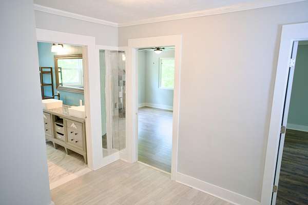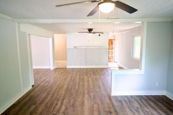 Welcome to this stunning, fully renovated 3 Bed/2 Bath Ranch Homestead in charming Williston, SC.! Just 30 minutes to Aiken, a 1 hour 45 minute drive to Savannah, and an hour to both Columbia and Augusta! This home features a brand-new metal roof, wood composite flooring throughout, and a beautifully renovated kitchen with new cabinetry, butcher block countertops and new stainless-steel appliances. The thoughtful upgrades continue with a versatile laundry room with a built-in mud bench, additional counterspace, ample storage and access to a full bath with an all-tiled shower. There are 3 spacious bedrooms all with custom built-ins in the closets. The third bedroom with sliding doors can easily serve as a home office or flex space and opens directly onto a sprawling brick patio - ideal for relaxing or entertaining. The second bathroom impresses with a custom vanity, tiled countertops, vessel sinks, and a tub/shower combo finished with designer tile. Outside, the detached garage provides the perfect space for a workshop, storage, or even a dream mancave. Adding to the charm, a picturesque stream runs through the property, complete with a quaint bridge - and the backyard gently backs up to a peaceful pond, offering serene views and a true sense of nature right at your doorstep. This move-in-ready home perfectly blends modern updates with rustic beauty. Don't miss the chance to make this one-of-a-kind property yours!
