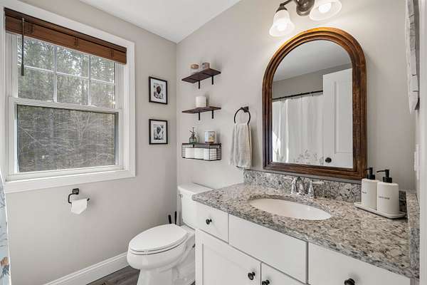 Built in 2022 and only getting better — this cape-style home in Nottingham checks every box for buyers looking to trade the noise for something real. Set back from the road and surrounded by woods, this three-bedroom, two-bath cape offers the kind of privacy that's genuinely hard to find. Pull into your two-car garage and the rest of the world kind of disappears. Deer wander through the yard, the birds are loud in the best way, and on a weeknight it's quiet enough to actually decompress. The original owners have spent a few years making it their own — upgraded countertops give the kitchen a polished feel, and the newly added deck out back is already earning its keep, whether that's morning coffee with the trees or a fire going after a long day on the trails. A new fenced in yard to keep things in (or out) of your yard, and a generator hookup means a nor'easter is just another cozy night in. Central AC handles the other end of the calendar. Pawtuckaway State Park is just down the way — miles of hiking, mountain biking, and paddling just minutes from your door. The town beach is a warm-weather staple that never gets old, and Nottingham's rural character means your neighbors are more likely to be wild turkeys than anyone else. Still, you're surprisingly well-connected — the Seacoast, Manchester, and Concord are all an easy commute, making this a realistic option for buyers who want the lifestyle without sacrificing the practicality. This is better-than-new construction with all the hard decisions already made and the finishing touches already done. Move in, hang your coat, and start enjoying it from day one.