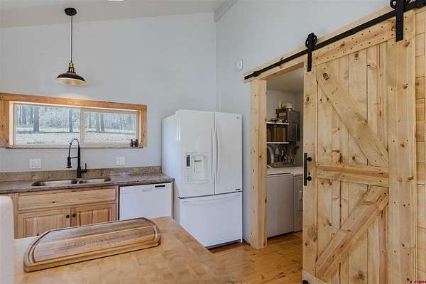 Alysha Ranson, Galles Properties, C: 970-903-1230, alysha@gallesproperties.com, www.crenmls.com: Escape to Southwest Colorado with this beautiful 2-bedroom, 2-bath mountain home offering usable acreage, privacy, and modern upgrades. This mountain property blends comfort with self-sufficient living including a well and updated septic system - perfect for anyone seeking the Colorado lifestyle. Enjoy the fenced garden, chicken coop, and 30x15 greenhouse, offering endless opportunities for sustainable living and outdoor enjoyment. Inside, the home features an open kitchen and dining area, two inviting living spaces, and a flexible main-level guest room or home office. The main bathroom includes heated floors, while the upstairs primary suite provides a private bath and a covered balcony with views and crisp Colorado air. Completely rebuilt from the studs up between 2017-2020, this home is move-in ready. With no HOA, you'll have the freedom to create the property you've always dreamed of. Whether you're looking for a year-round residence or a serene Colorado getaway, 85 McLain Court offers the perfect balance of modern living and mountain charm.