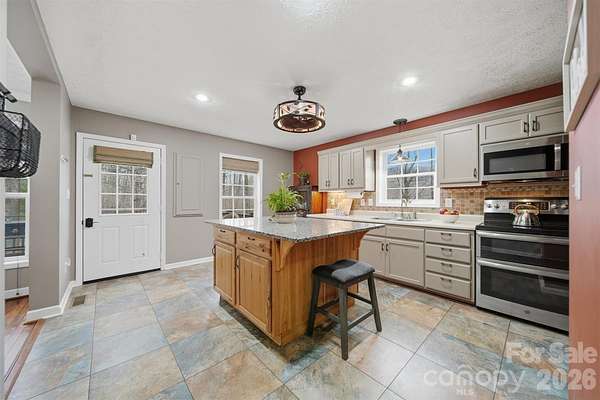 Mountain House For Sale in Linville Falls! Enjoy your very own mountain retreat, whether you're looking for a full-time residence, a part-time retreat, or a short-term rental opportunity, this 2 bedroom, 2 1/2 bath home can be yours. A covered, wrap-around front porch welcomes you into the home. The kitchen features and abundance of cabinet space, a granite top, "eat-at" kitchen island, and is open to the dining room featuring a gas logs fireplace. Bedroom 1 is located on the main level, with closet and full bathroom just across the hall & close to the laundry and half bath. The living room, with vaulted ceiling and large windows allows the outside views to come inside and features a gas logs woodstove. The upper level features a 2nd bedroom with triple closets and a full bathroom with an additional loft currently used as a third bedroom with all the comforts of home. Spend your days hiking scenic trails nearby, fishing one of the local streams, or unwinding beside one of the fireplaces with your favorite book. Surrounded by lush forest and just 1-2 minutes from the breathtaking Linville Falls, The Blue Ridge Parkway and Linville Falls Winery, Call us about mountain living in Linville Falls! GPS does not bring up Sarahs Spring Rd. properly. Use Hobs Knob Rd in Newland to access Sarahs Spring Rd.