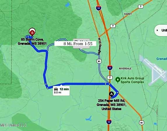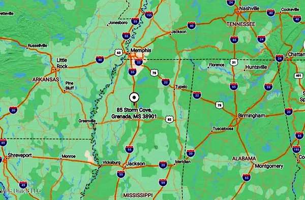 Directions to the land: From the I-55 Papermill Rd. Exit 208 Go East on Papermill Rd. for 4/10 mi. then left on Hwy 51 for 1/2 Mile and as soon as you go back under I-55 turn left on Pea Ridge Rd. After 3 miles turn Right and stay on Pea Ridge Rd. for another 3 miles then turn Right at the Pea Ridge Cemetery Sign onto Steel Cove. Then bear right at the cemetery onto Storm Cove then take the first l