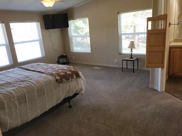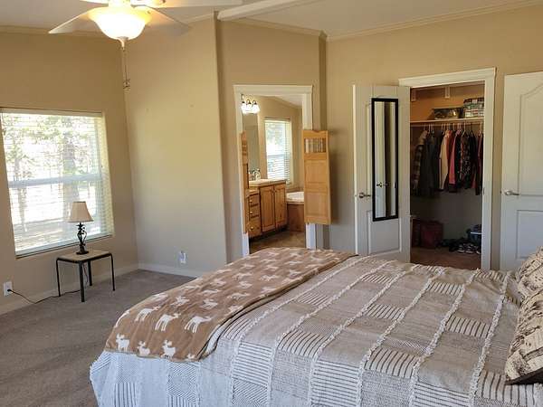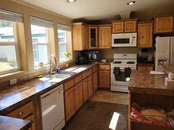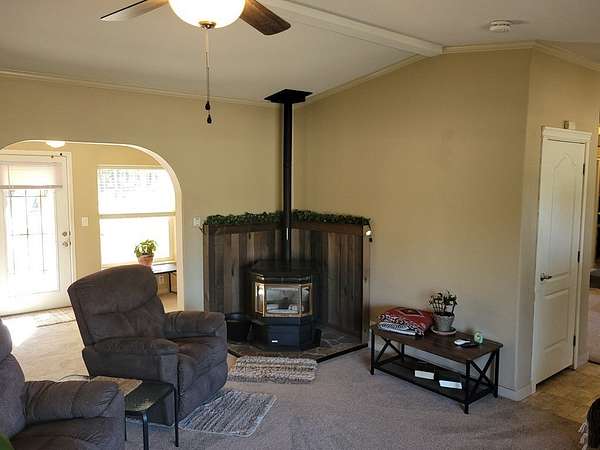 SINGLE LEVEL HOME WITH DOUBLE DEEP GARAGE PLUS RV GARAGE! Very nice home with enclosed breezeway to the garage. A wonderful set-up for winter living! Single level, well maintined manufactured home (real property), 3 bed, 2 bath, sun room, pellet stove, and covered porch. New carpet and paint! Spacious master suite with large walk-in closet; enjoy the spa in the master bath. Kitchen is open, bright, and includes a built-in breakfast bar. Level, wooded, 1.59 acre parcel, and home sits back from the road. Enjoy the privacy of the back yard while hanging out on your deck; terrific place to entertain family and friends. Located only 1 1/2 hours from Boise or 30 minutes to McCall, Idaho. Recreation is abundant: Brundage or Tamarack Ski Resorts, many golf courses, RZR or snowmobile back country public lands, boating/fishing on Lake Cascade.... We could go on and on!