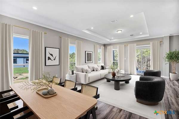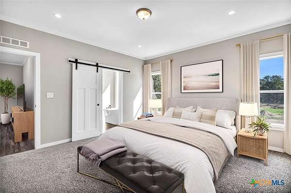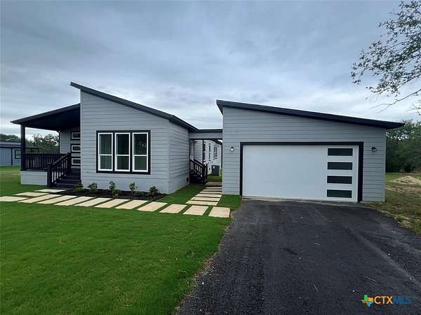 Set on over 2 acres with mature trees and a peaceful creek at the back, this modern masterpiece offers the perfect blend of quiet country living and city convenience, all on a paved road less than 30 minutes from Austin. Unlike anything else on the market, this home stands out with its sleek modern design, clean lines, and thoughtful details throughout. Step inside and be amazed by the spacious open layout filled with natural light, a designer kitchen with a statement island, and living spaces built for both comfort and entertaining. The owner's suite is a private retreat with a spa-style bath, walk-in closet, and views of the serene outdoor setting. Outside, enjoy the expansive yard, room to grow, and the beauty of your own creekside backdrop. This property delivers a rare combination of style, space, and Texas charm.