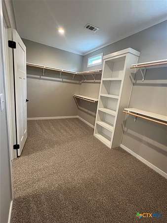 - Breakfast Bar, Ceiling Fans, Coffered Ceilings, Crown Molding, Double Vanity, Eat In Kitchen, Garden Tub Roman Tub, Kitchen Dining Combo, Kitchen Island, Main Level Primary, Pantry, Primary Downstairs, Smart Thermostat, Soaking Tub, Stone Counters, Walk In Closets