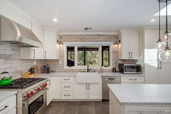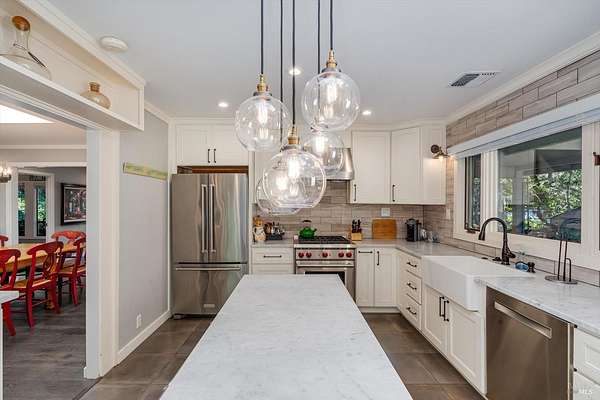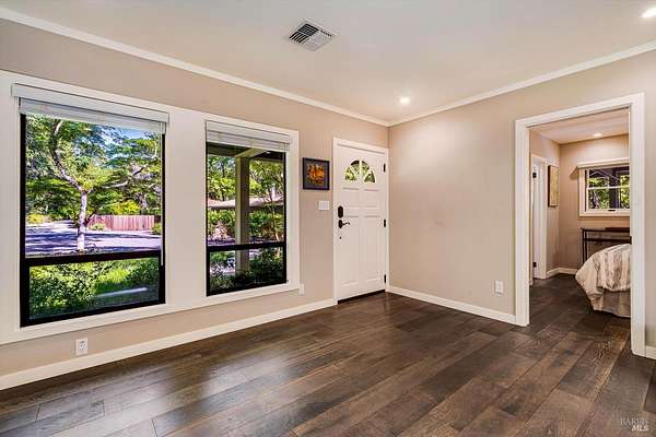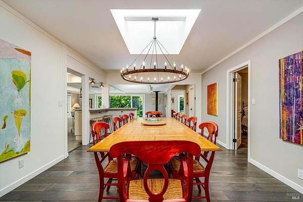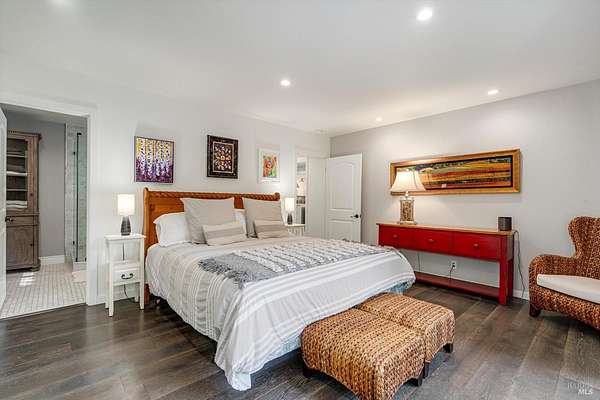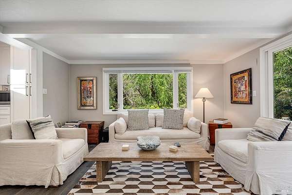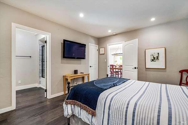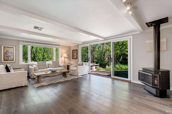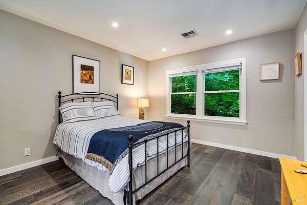 Located just five minutes from Meadowood Resort and downtown St. Helena, this 20-acre estate offers rare privacy, high-end amenities, and turnkey luxury living. The main residence is a recently remodeled, single-story home featuring three ensuite bedrooms, a dedicated office, a chef's kitchen, and a spacious dining area. The living spaces open directly to the outdoors, creating seamless indoor-outdoor flow. A separate guest cottage includes a full kitchen, living room, and bedroom suite. The property also features a wine cellar and tasting room, bocce court, outdoor BBQ pavilion, raised garden beds, an olive grove, and mature landscaping throughout. A year-round creek runs along the edge of the property, enhancing the peaceful setting. This is a versatile and low-maintenance estate in a prime Napa Valley location. This property is offered fully furnished.