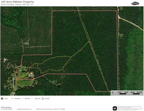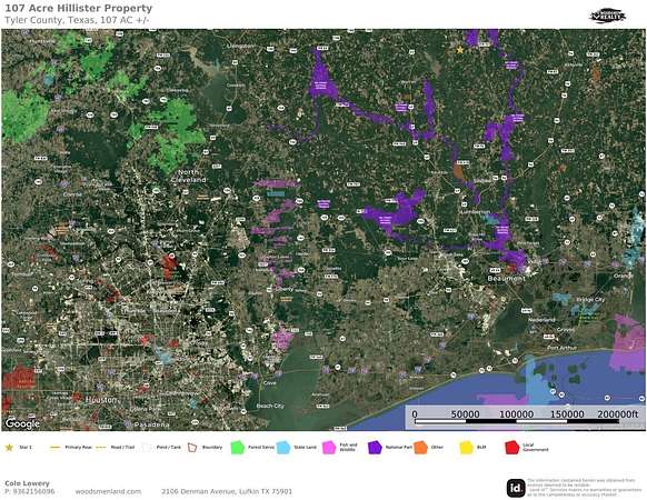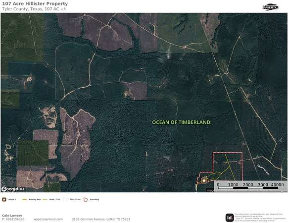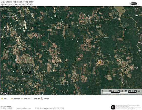 This 107 acre property sits near the dead end of CR 4390, in the heart of Hillister, TX, a quiet pocket of East Texas known for massive ranches, low population, and some of the best low-fence whitetail hunting around. This is a property with incredible potential. Build your hunting cabin, dream home or ranch, or harvest the timber to pave the way to sculpt it the way you see fit; the opportunities are endless! Additionally, the property is accessed by a good condition 100-yard private road, shared by only two other people, granting extreme privacy. This property has power and water on site, no restrictions, great timber value, and is 15 minutes to Woodville.