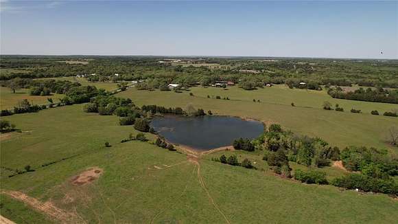 This 197 + acre ranch property is a dream for those seeking their own piece of Texas paradise! Adjacent to Corps of Engineers land and near Lake Texoma, the ranch offers rolling terrain with varied topography, spectacular panoramic views, plenty of mature trees scattered throughout, pastures for grazing cattle, wooded areas, and multiple tanks stocked with catfish and bass. The quaint 4-bed, 2-bath country home at the front of the property offers a spacious living area, an open eat-in kitchen w a separate dining area, 4 large bedrooms including one with an ensuite, and a covered front and back patio ideal for spending your evenings. Outside, you'll find two outbuildings totaling 3200 sqft and 2800 sqft of carport space, perfect for keeping all your necessary farming and ranch equipment. Only an hour to the DFW metroplex and minutes to shopping, grocery, entertainment, and Lake Texoma, this property truly is a gem!