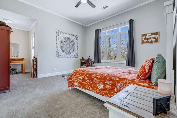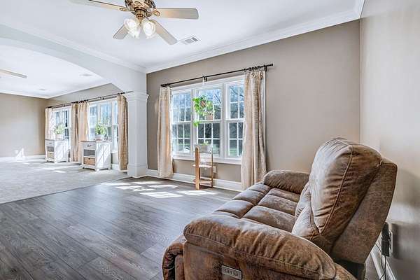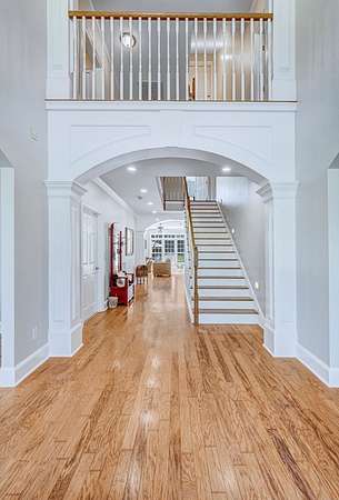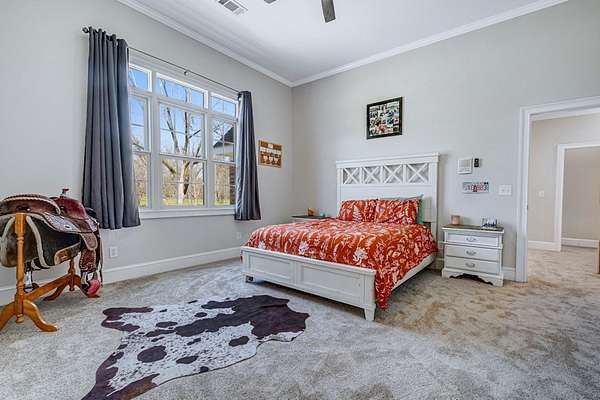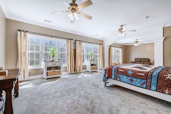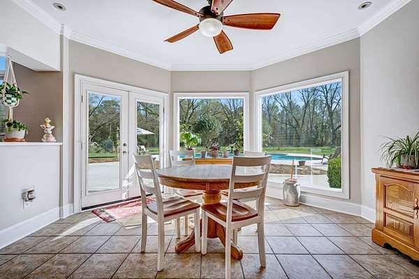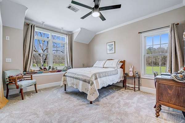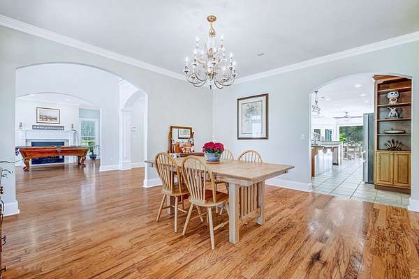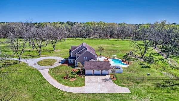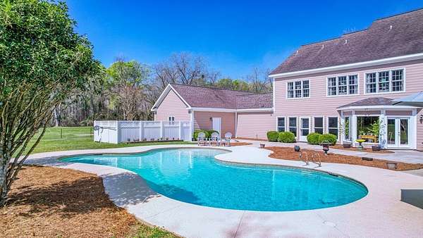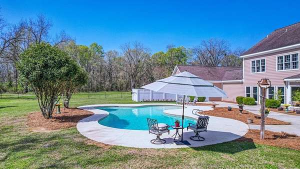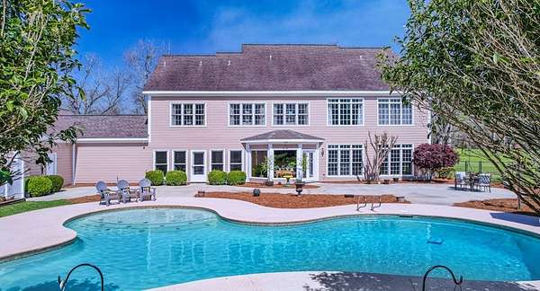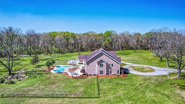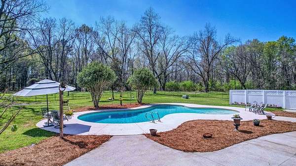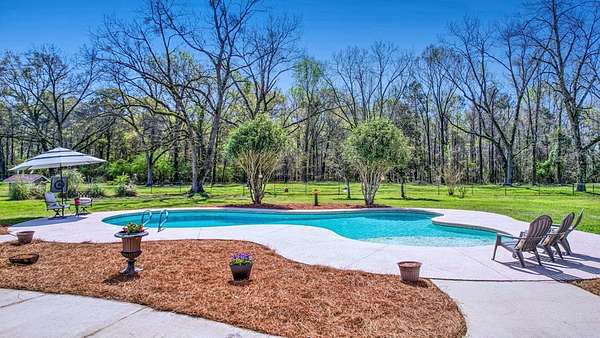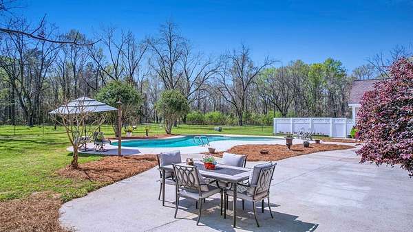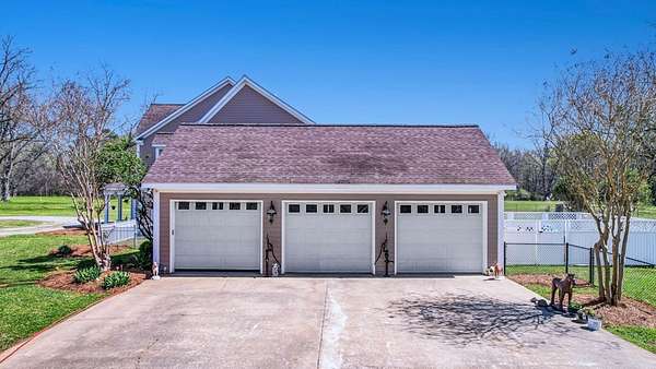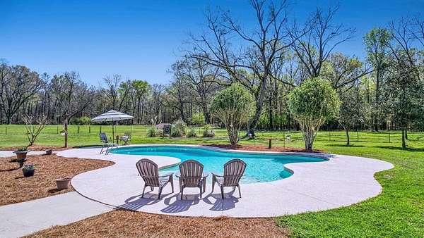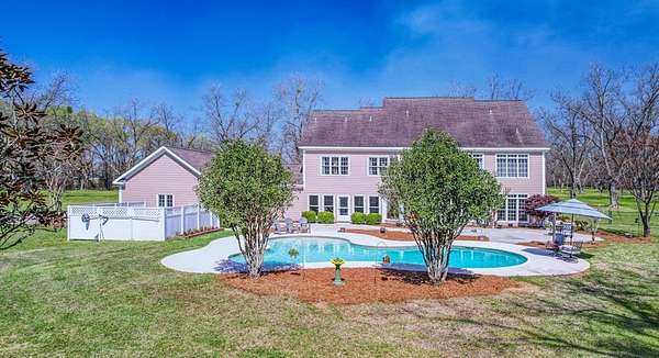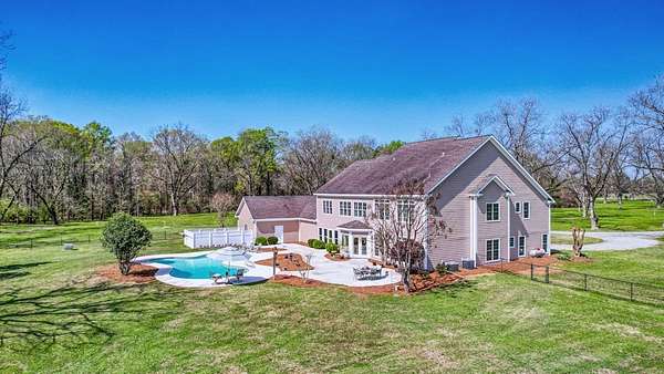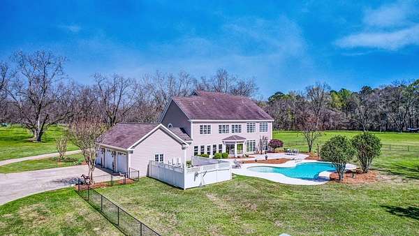 ~EXECUTIVE LUXURY HOME IN LEE COUNTY ON 15 ACRES WITH AN IN-GROUND POOL ~ COUNTRY LIVING AT IT'S FINEST ~ THE ESSENCE OF ELEGANCE ~ Down a long driveway flanked by trees sits this 5-bedroom, 5 bath home + Office + Bonus Room featuring 5725 sqft and is the CREME DE LA CREME for entertaining and raising a family! Country sophistication with 15 acres of beautiful grounds that provide peace and privacy. Make a grand entrance in the gracious foyer, illuminated by a large chandelier suspended from the second story ceiling. Intricate moldings, chair railings, architectural columns, and arches fill the home! Warm hardwood floors add character and an abundance of natural light fill this house with JOY! The front formal living room is enhanced by a warm, cozy fireplace with a lovely carved mantle! The formal dining room seats 12 which is ideal for all of your special occasions and gathering! Gourmet kitchen includes beautiful custom oak cabinetry that provides ample storage and counter space. Counters made from South African Granite, tile backsplash, Top of the line stainless steel appliances (including double ovens), extra-large walk-in pantry, island, breakfast bar and breakfast nook that is surrounded by windows overlooking the pool! Open to the kitchen is the Den which has a fireplace flanked by built-ins and large windows for ample natural light! BONUS ROOM on main floor that is perfect for a pool table, game room, playroom, homeschool or teenage headquarters! The separate Office has 2 built-in desks, custom cabinetry, and storage. An enormous utility room and pantry! 2 large laundry rooms: one downstairs and one upstairs. Large bedroom and bathroom on the main floor! Beautifully carved staircase leads to the second story which houses 4 bedrooms and 3 baths! Enormous Primary Suite with a sitting area and luxury private bathroom that has extra-large vanities and a massive walk-in closet! 3 other spacious bedrooms overlook the breathtaking grounds. All bedrooms have walk-in closets. The third story is all walk out attic space for the ultimate storage space! Outside boasts a wonderful Gunite Pool featuring loads of lounge space with cool decking, fenced yard, plush landscaping, three car garage and a rocking chair front porch! Plush and manicured landscaping! NEW PAINT AND CARPET! This award-winning design and scenic setting are the EPITOME of LUXURY!