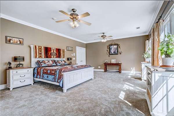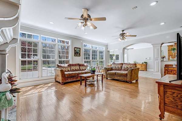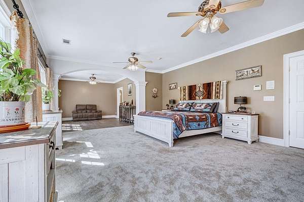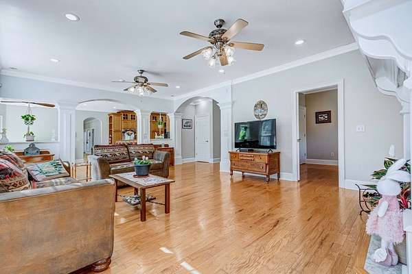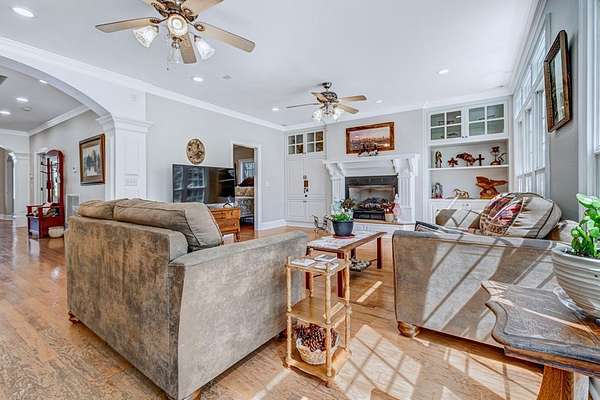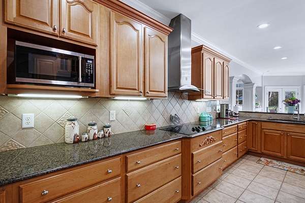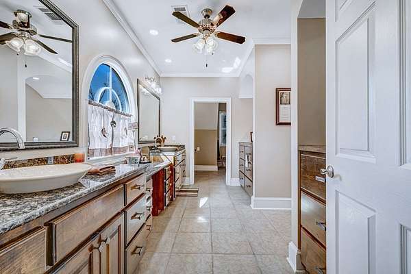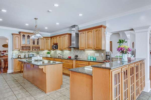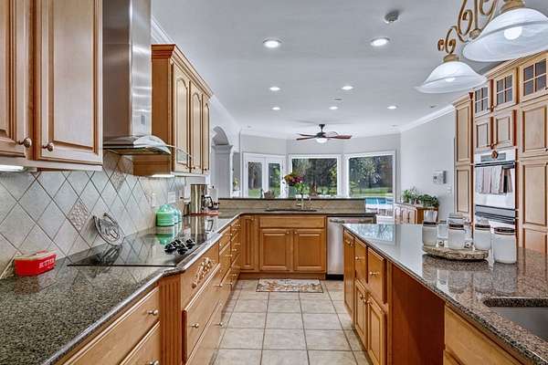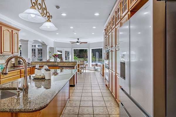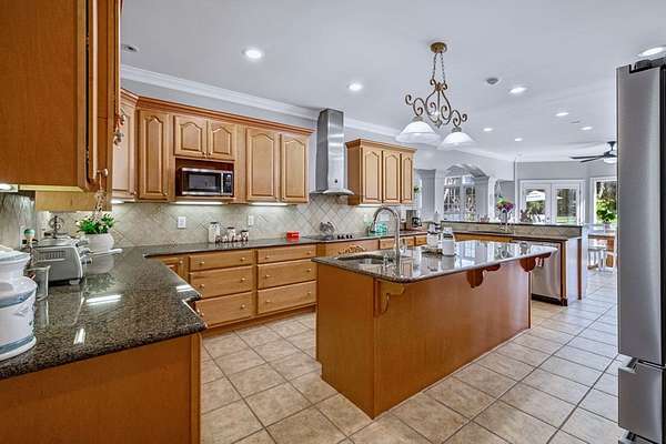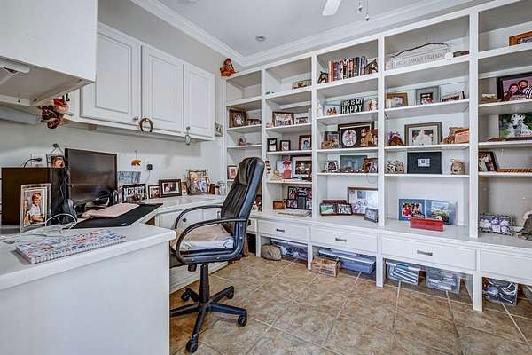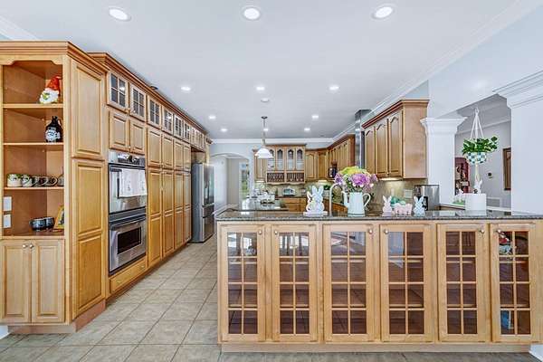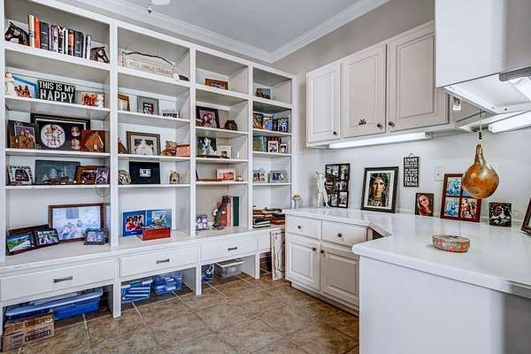 - Built-In Bookcases, Crown Moulding, Granite Counter Tops, Kitchen Island, Lighting Recessed, Newly Painted, Open Floor Plan, Pantry, Specialty Ceilings, Walk-In Closets