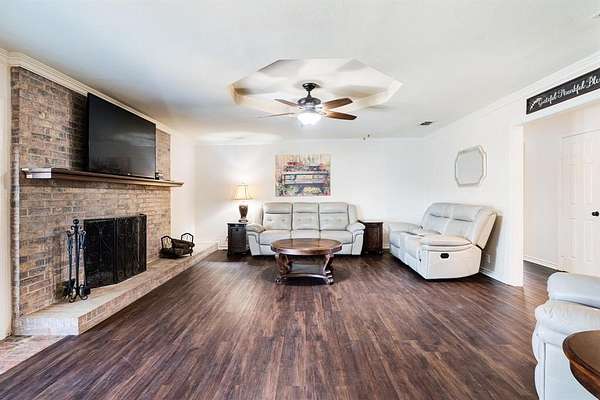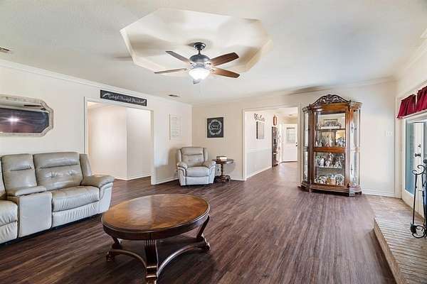As you enter this immaculate residence, you are greeted by a spacious living area featuring a striking brick fireplace as the centerpiece. This three-bedroom, two-bathroom home has undergone numerous recent upgrades, including the removal of all paneling, which has been replaced with sheetrock, complemented by crown molding and chair railing. Additional enhancements include fresh paint, new windows, modern cabinets and countertops, updated appliances, a metal roof, new flooring, doors, and extra insulation in the attic. The bathrooms have also been beautifully renovated.