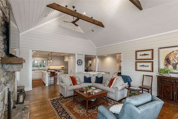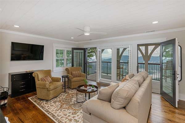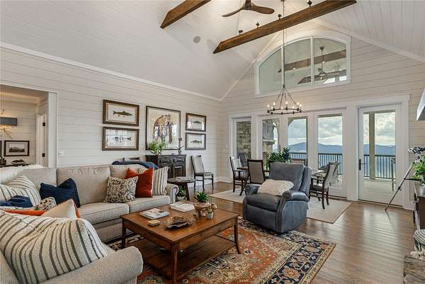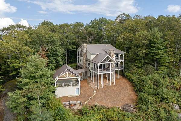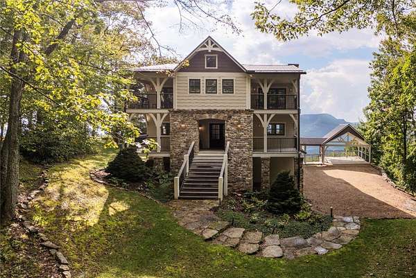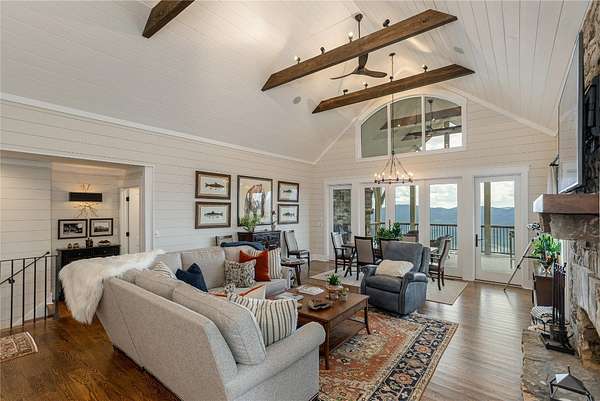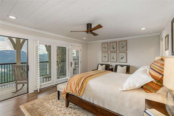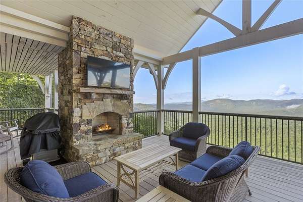 Perched at 4,000 feet atop Little Terrapin Mountain in Cashiers, North Carolina, this remarkable residence offers sweeping mountain views with breathtaking panoramas of Whiteside Mountain, Shortoff Mountain, Yellow Mountain, Devil's Courthouse, and Scaly Mountain in an ever-changing masterpiece of light and landscape. Covered balconies extend from each of the three bedrooms, providing an ideal space to enjoy the cool mountain breezes, while the expansive teak deck with its striking stone fireplace creates an unrivaled setting for outdoor entertaining. The primary suite is also perfectly positioned to showcase the stunning views. Inside, luxury meets craftsmanship at every turn. Shiplap walls and oak flooring bring warmth and character, while the soaring living room fireplace anchors the home with timeless style. The chef's kitchen is designed to impress with a Wolf range, black granite countertops, and a Carrara marble island that invites gathering and conversation. Each bedroom features a spa-like ensuite bathroom with heated floors, offering comfort and indulgence for every guest. On the same floor as the guest suites, a bonus room with a wet bar serves as an oasis for relaxation and activities, or as an office with the stunning mountain views sparking inspiration and contemplation. Thoughtfully designed for modern living, this home also includes a spacious lower-level family room and an outdoor firepit. Comfort and security are provided by cameras, smart wiring and devices, high-speed internet, an on-demand water heater, and a whole-house generator. Whether hosting family and friends or savoring the solitude of the mountains, this exceptional property delivers the perfect blend of natural beauty, refined finishes, and peace of mind.