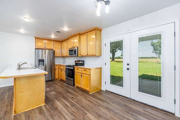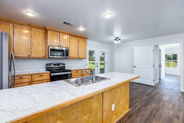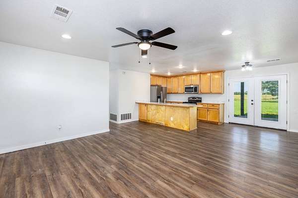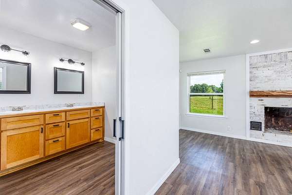 Walking Distance to Lake Boswell! Offers the perfect blend of updated living and ranch-ready land. Ideally located just minutes from town and within walking distance to Lake Boswell, this property combines the serenity of country life. The 3-bed, 2/1 bath brick home has been tastefully updated and converted garage that adds additional sq footage bringing it to approximately 1622 sq feet. Modern new flooring placed throughout A spacious kitchen featuring all new stainless-steel appliances and wood-stained cabinetry. A large bathroom with dual vanities and a fully tiled walk-in shower Bright living room with a cozy fireplace and wall of windows overlooking green pastures. Outside, the land is fully fenced for livestock, with two ponds providing ample water. Whether you're planning a full-time ranching operation or looking for a peaceful retreat, this versatile property delivers. Other highlights include: Corner location with paved road access and road access on multiple sides (N 4010 Rd, West St) Two ponds and a mix of open pasture and tree cover Zoned agricultural - ready for cattle or recreational use This property offers a home and acreage with endless potential for residential, ranch, or future development.
