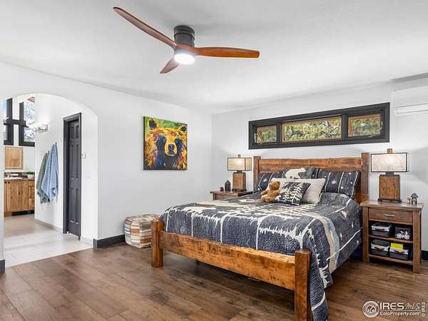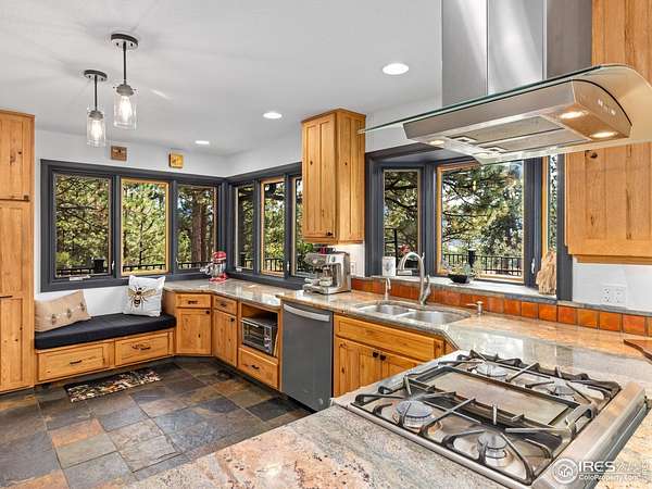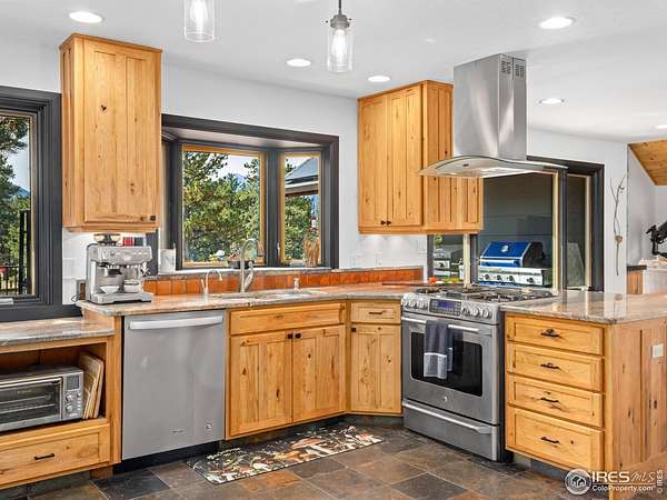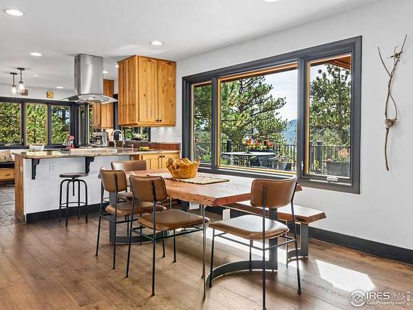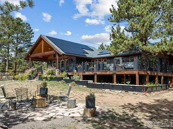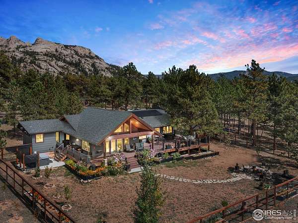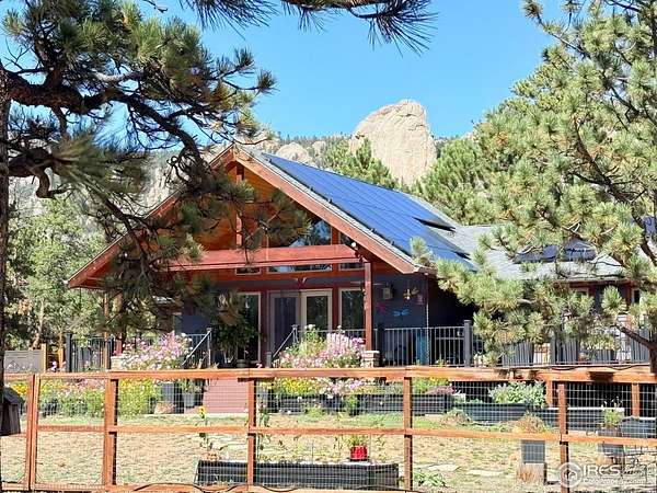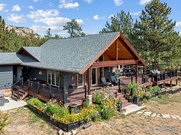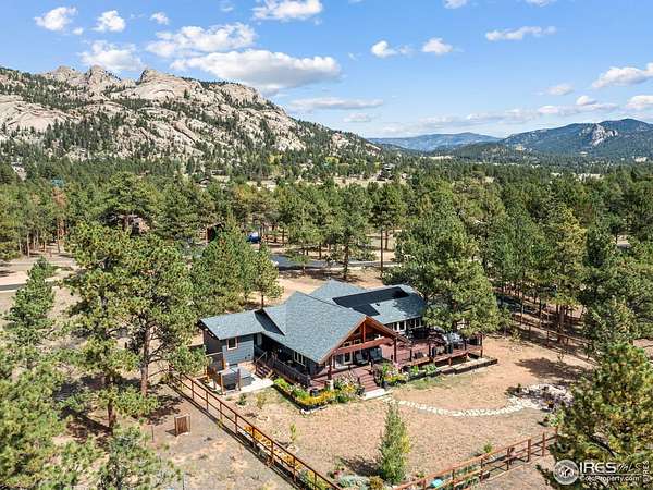 High in the Estes Valley, with Lumpy Ridge it's backdrop & Longs Peak & The Divide spread out before it, sits the treasure you've been seeking! It's a dream home for those who love the outdoors and want to bask in the joy of nature while still being close to town. W/ a mountain aesthetic in a serene setting, the exceptional design & fine finishes combine to create a mountain masterpiece. In this well-conceived and beautifully executed home, the floor plan flows from the gourmet kitchen, w/ its gas cooktop & hood, SS Appliances, & spacious Granite Countertops. It moves into the Dining room w/ its sunny seating, & into the living area where you can stretch out & relax. Artistic touches abound. New wide-plank hickory floors accent the vaulted knotty pine ceiling. You'll be grounded by the massive black granite hearth & countertops on new living room cabinets. Downstairs there's a huge family room & a hobby/home gym/music/yoga/play room. The interior is bathed in natural light from all the south-facing windows. There's a new Solar system (10kW), connected to the grid & ready for batteries to be installed. Just minutes from downtown Estes Park, this updated home on 3 private acres has sweeping views of the surrounding mountains. The property offers a quiet, natural setting with easy access to town, & Lumpy Ridge trail is a short walk. Outdoor enthusiasts will love the expansive deck, secluded hot tub, fire pit, and ample space for RV. Every thing in this home is designed to maximize the natural beauty of its surroundings. Outside, you'll love the peaceful seclusion of your acreage, perfect for wildlife watching, stargazing, tending all the flower & veggie beds & fruit trees or simply soaking in the fresh mountain air. There's a feeling of intentional connection to the land. & there's a small barn, if you want to have horses. It's a tranquil setting, yet you're only a walk or short drive to Estes Park's shops, restaurants, the Lake Trail and Rocky Mountain National Park.