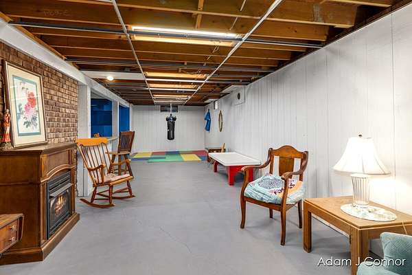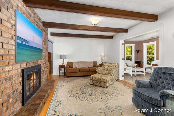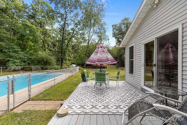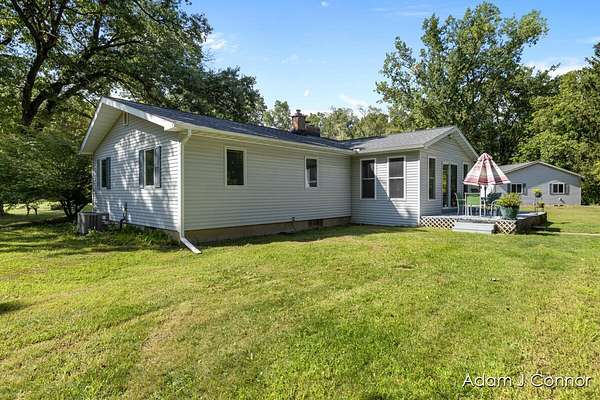 Welcome to this oversized ranch nestled on a quiet, tree-lined street just 15 minutes from downtown Grand Rapids. Set on a serene 2acre lot, this home offers the perfect blend of space, comfort, and convenience. Main floor features 4 generously sized bedrooms and 2 full baths. The inviting living room and dining area are anchored by a cozy double sided fireplace, perfect for relaxing or entertaining. Original hardwood floors run throughout all bedrooms and the living room, adding warmth and character. The kitchen boasts custom cabinetry, stainless steel appliances, and a functional layout ideal for everyday living. Downstairs, you'll find two additional non-conforming bedrooms, offering flexible space for guests; a home office; or a hobby room. Step outside and enjoy the expansive backyard complete with a fire pit and in-ground pool. The HEATED 30x40 barn, with 220 service, adds additional space for a workshop for your toys! ROOF, FURNACE/AC, and H2O Heater are less than 3yrs old!