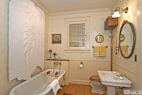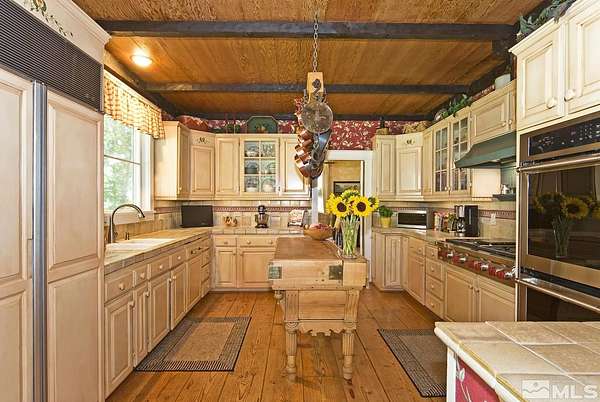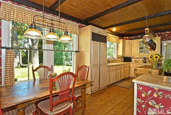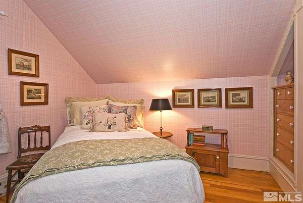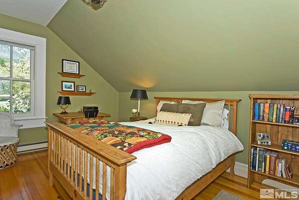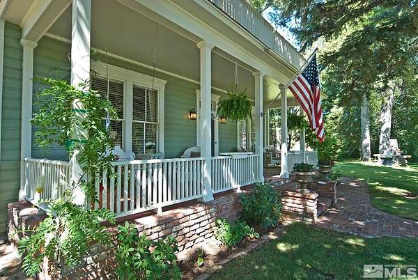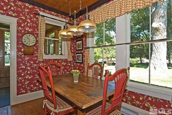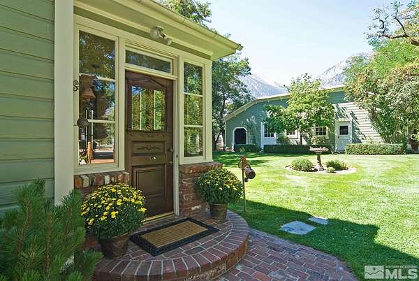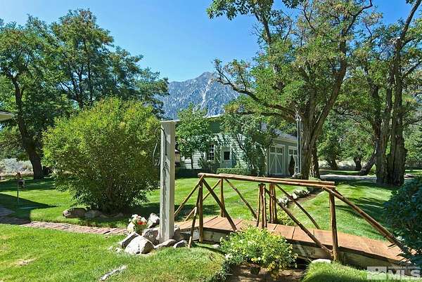 Experience a piece of history in this captivating home where timeless craftsmanship meets modern comfort. Built in 1861 & located on the Emigrant Trail, the "Sheridan House" was a boarding house & part of a small village that included a blacksmith shop, a store and two saloons. This extraordinary home offers 2845 sq ft with 4 bedrooms and 2 bathrooms, plus a 328 sq ft guest house with 1 bed/1 bath. Also includes a 500 sq ft garage, 500 sq ft workshop & an 800 sq ft Grist Mill. The park like setting features, a private sanctuary of old growth trees, peaceful creek, pond and sprawling lawns. Amidst the natural beauty, enjoy gatherings around the rustic rock BBQ w/commercial 36" grill while taking in the beautiful mountain and valley views. The kitchen blends vintage inspired details seamlessly with modern amenities such as a Wolf 48" LP gas cooktop, Sub-Zero refrigerator. Formal dining room adorned with vintage style wallpaper & chandelier. Cozy living room has a fireplace and opens into a spacious family room. The rustic office/library exudes warmth & character. Wet bar with wine fridge. Four spacious bedrooms upstairs and a luxurious vintage style bathroom with heated floors. 240' high producing domestic well and priority surface water rights included. Gated and private end of the road location. All of this plus a historical property tax exemption! Own a piece of history with this extraordinary home and property. Centrally located to Lake Tahoe, Carson Valley, Nevada and numerous golf courses and ski resorts. Short drive to the Reno-Tahoe International Airport.
